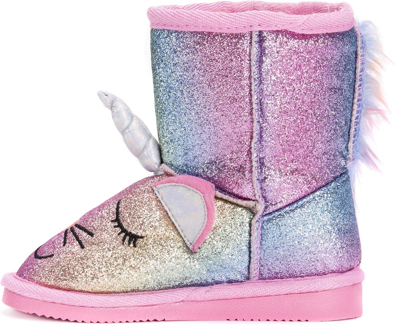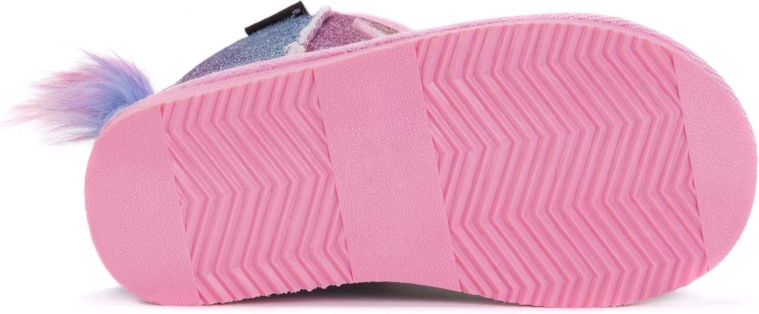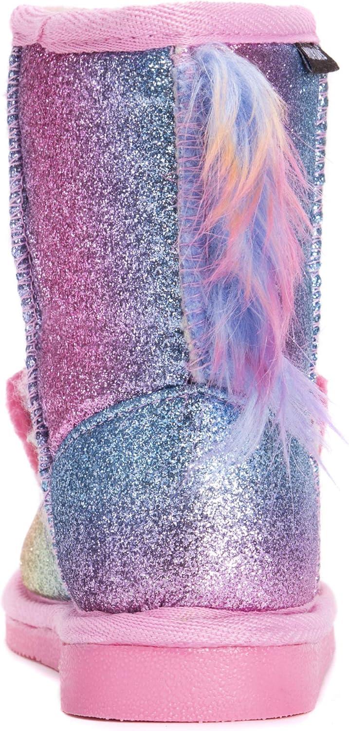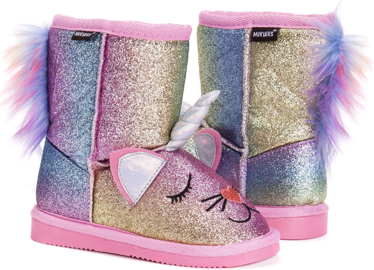 Your favorite mini will love MUK LUKS kids averly unikitten boots! An easy pull-on style for kids on the go, These adorable booties feature a fun and glittery unikitten design, durable tpr sole, and warm Faux fur lining to keep tiny toes cozy. The little in your life will never want to take these sparkly rainbow boots off! Spot clean, no bleach, dry flat. Imported. – TPR Sole – 100% polyester Insole – 100% polyester Upper – 100% polyester Faux fur lining – no heel – US kids whole sizes 8-12 – half sizes should size up.