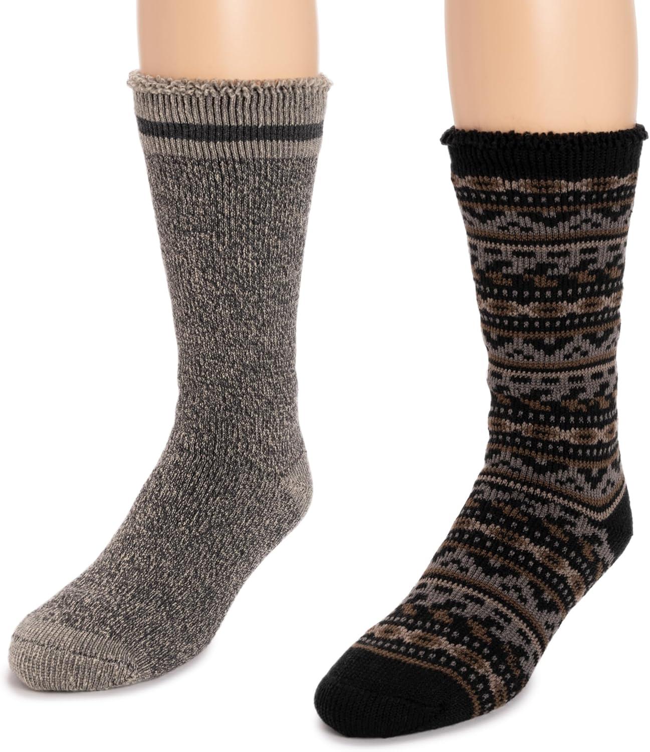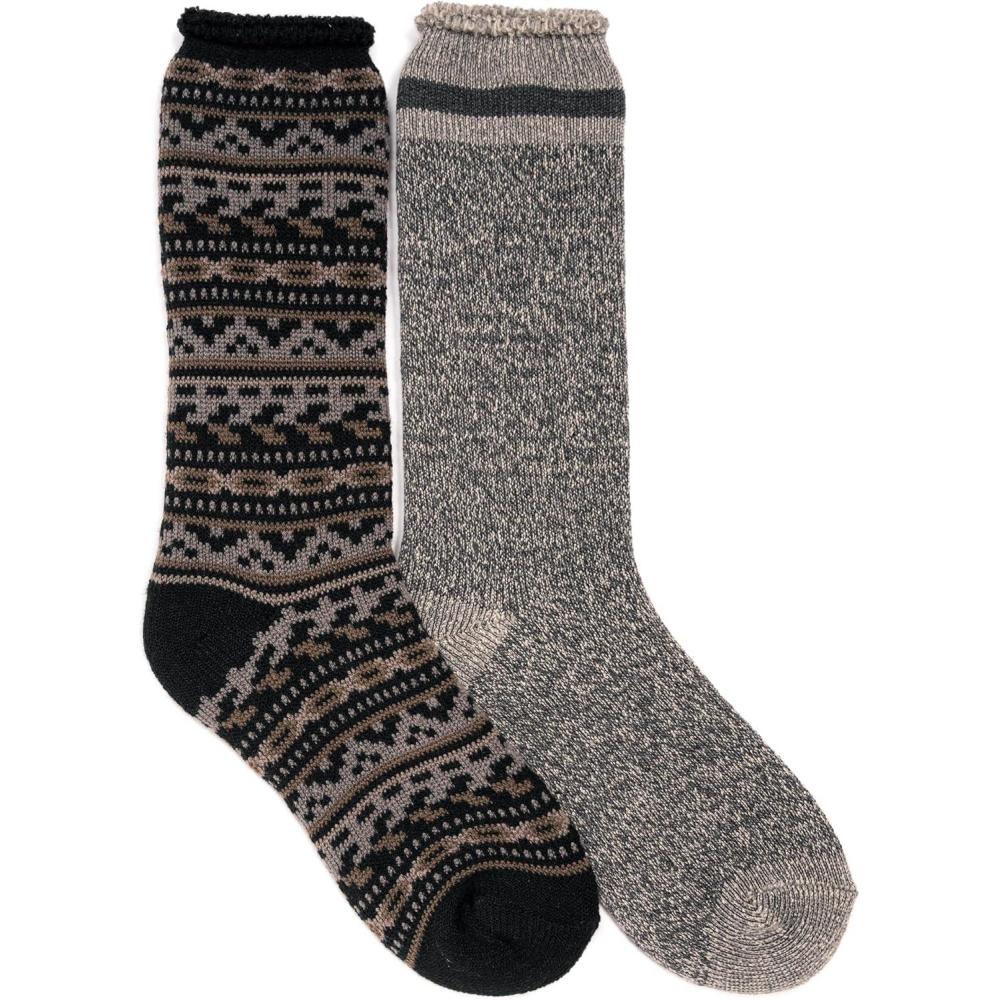 MUK LUKS Mens 2 Pk Heat Retainer Socks(Ebony/Grey)