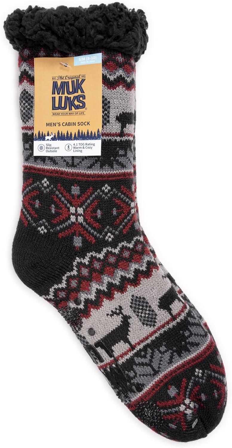 MUK LUKS mens Cabin Sock(Ebony/Cinder)