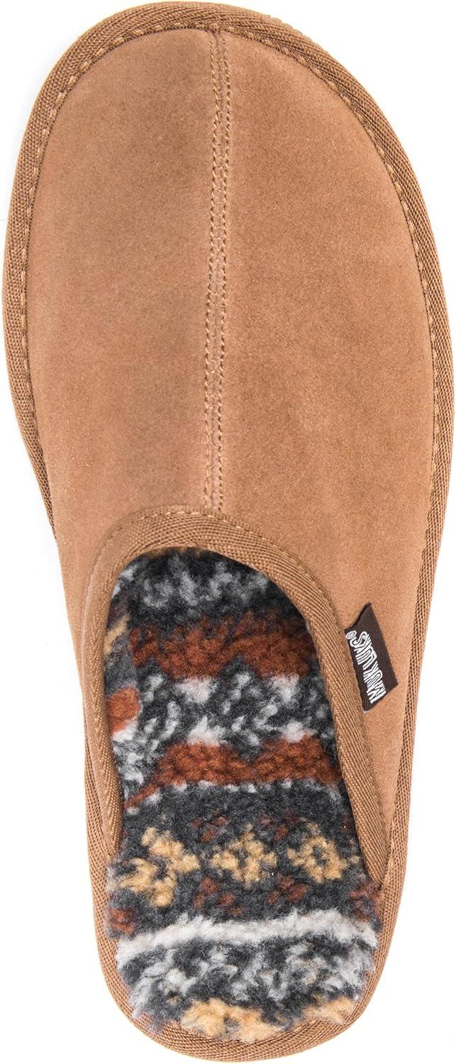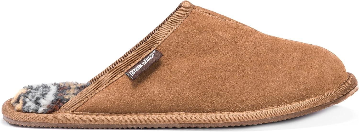 Keep toes warm this cold weather season with MUK LUKS® Men's Dave Printed Berber Suede Scuffs. Genuine suede and faux fur lining work together to keep you warm while the foam insole offers superior comfort. Wipe with Damp Cloth. Do Not Bleach. Dry Flat. Imported. -100% Indoor/Outdoor TPR Sole -100% Polyester Faux Fur Insole -100% Cow Suede Upper -100% Polyester Faux Fur Lining -Foam Insole -Men's Whole Sizes 9-13 -Multiple color options available