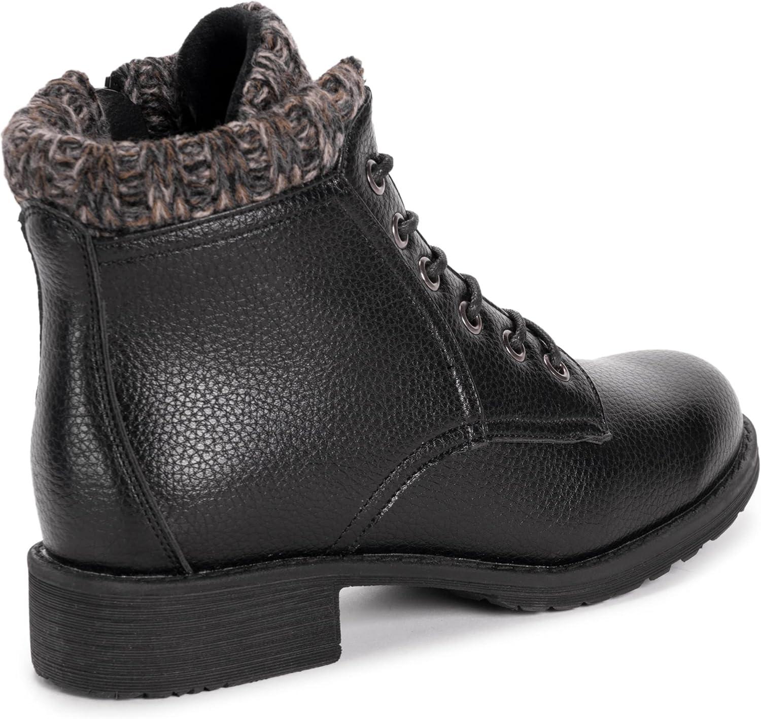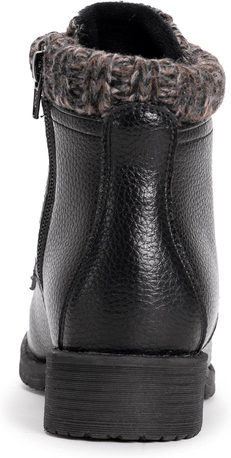 Put your best foot forward in LUKEES by MUK LUKS Women's Hiker Alps Boots. Knit textures combined with faux leather give this ankle bootie a classic vintage look while memory foam insoles and soft faux fur lining will keep your feet warm and comfortable all day long. Wipe with damp cloth. Do not bleach. Lay flat to dry. Imported. -Zipper Closure -100% Polyurethane Upper -100% Acrylic Knit Collar -100% Polyester Faux Fur Lining -Memory Foam Insole -Indoor/Outdoor TPR Sole -1.35 Inch Heel -Multiple Color Options -Women’s Sizes 6-11