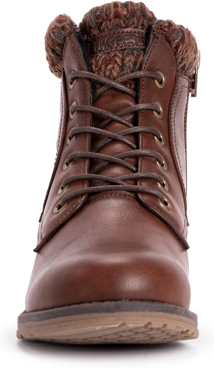 Put your best foot forward in LUKEES by MUK LUKS Women's Hiker Alps Boots. Knit textures combined with faux leather give this ankle bootie a classic vintage look while memory foam insoles and soft faux fur lining will keep your feet warm and comfortable all day long. Wipe with damp cloth. Do not bleach. Lay flat to dry. Imported. -Zipper Closure -100% Polyurethane Upper -100% Acrylic Knit Collar -100% Polyester Faux Fur Lining -Memory Foam Insole -Indoor/Outdoor TPR Sole -1.35 Inch Heel -Multiple Color Options -Women’s Sizes 6-11