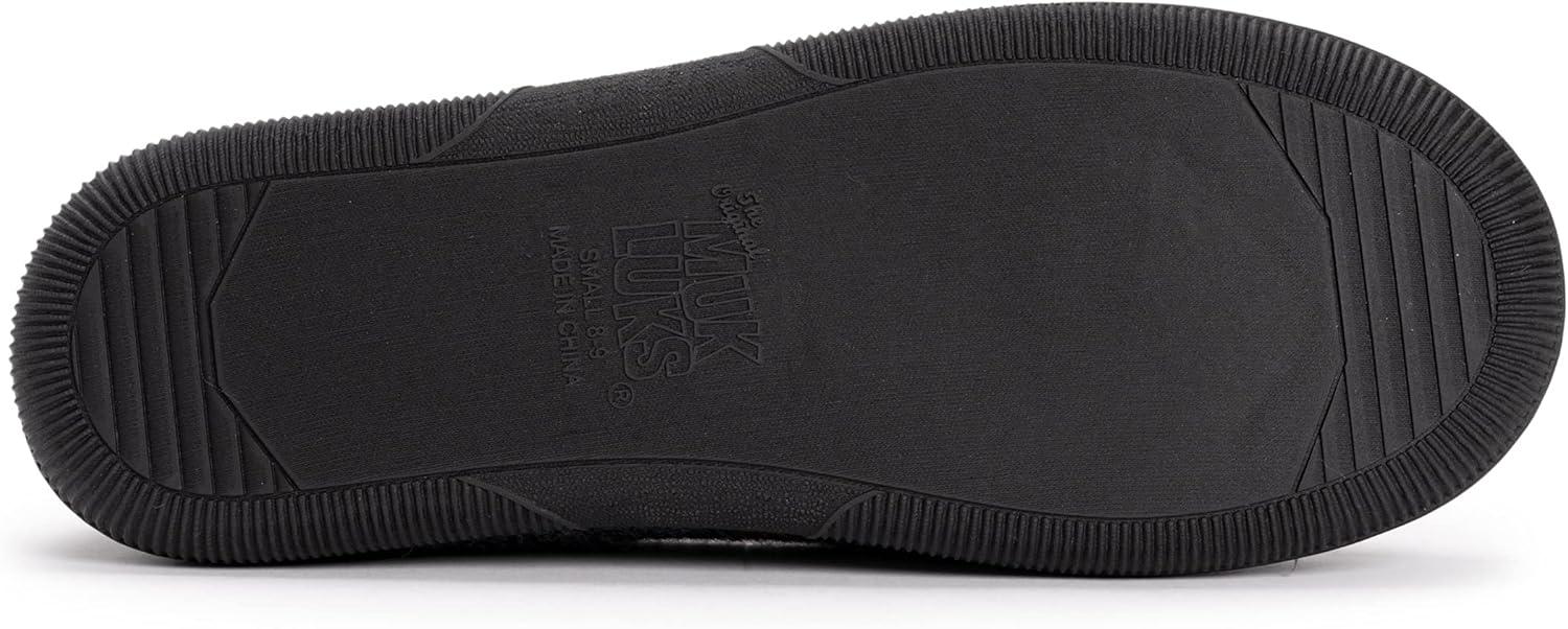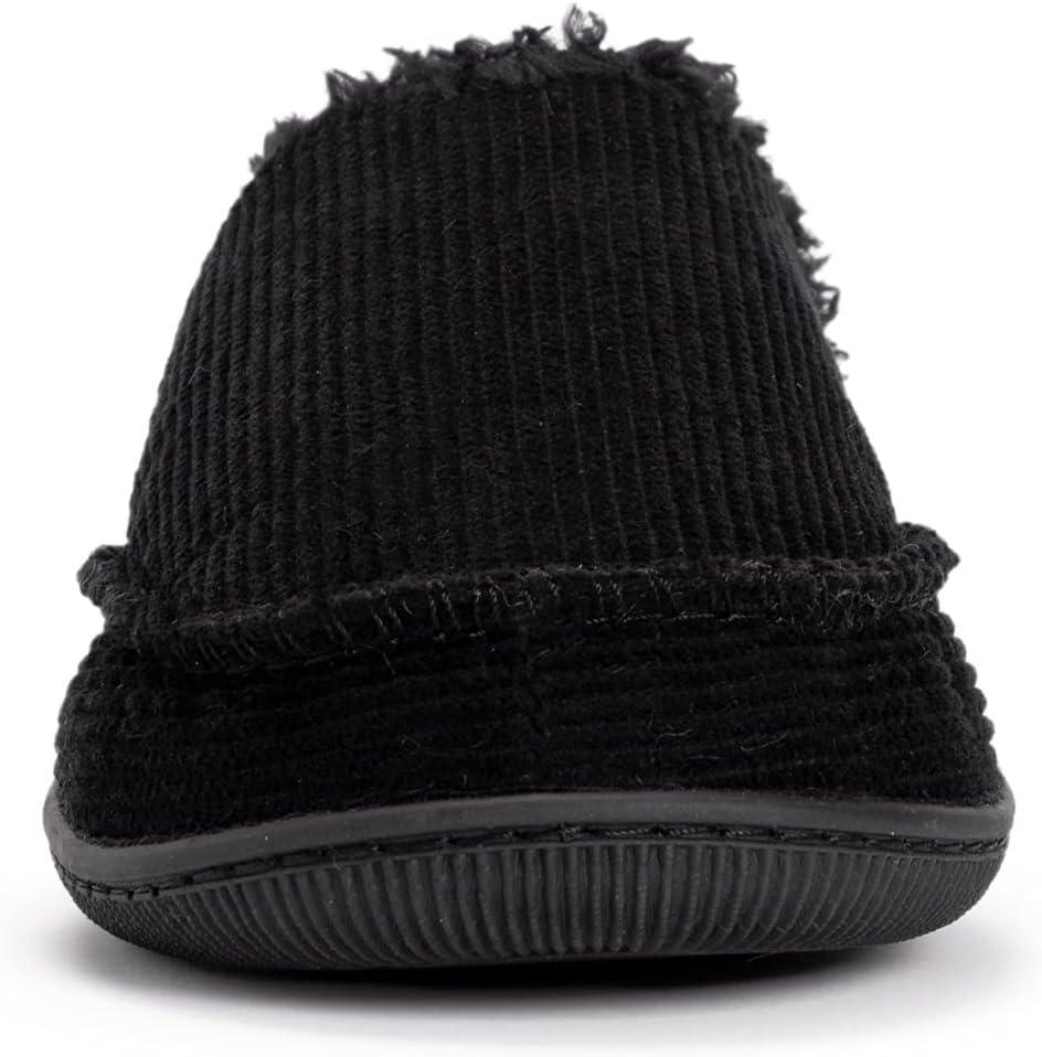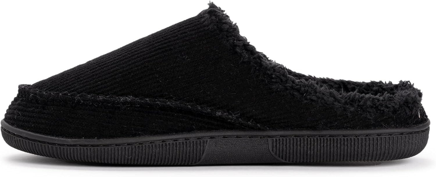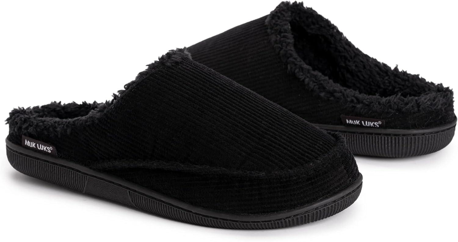MUK LUKS® Men's Corduroy Clog Slippers keep toes toasty on cold winter mornings and nights. Easy slip on style, comfortable memory foam insole, and a durable indoor/outdoor sole make these the perfect slippers to throw on anytime. Hand wash in cold water, no bleach, dry flat. Imported.