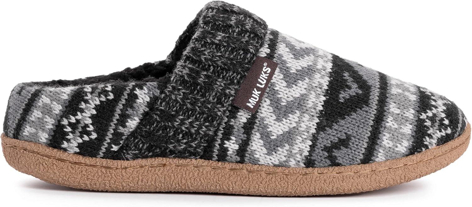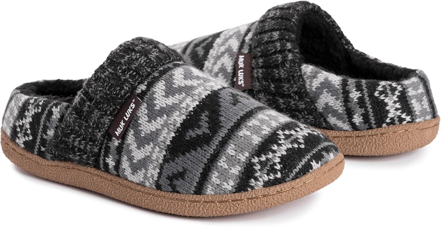 Slip into long lasting comfort with MUK LUKS® Men's Marcel Slippers. These cozy clog slippers will keep toes warm with soft faux shearling while memory foam insoles offer a soft cushion for your feet. Wipe with a damp cloth to clean, no bleach, lay flat to dry. Imported. -Indoor/Outdoor TPR Sole -100% Acrylic Upper -100% Polyester Faux Shearling Lining -Memory Foam Insole -Multiple Color Options – Men’s Sizes S (8-9), M (10-11), L (12-13)