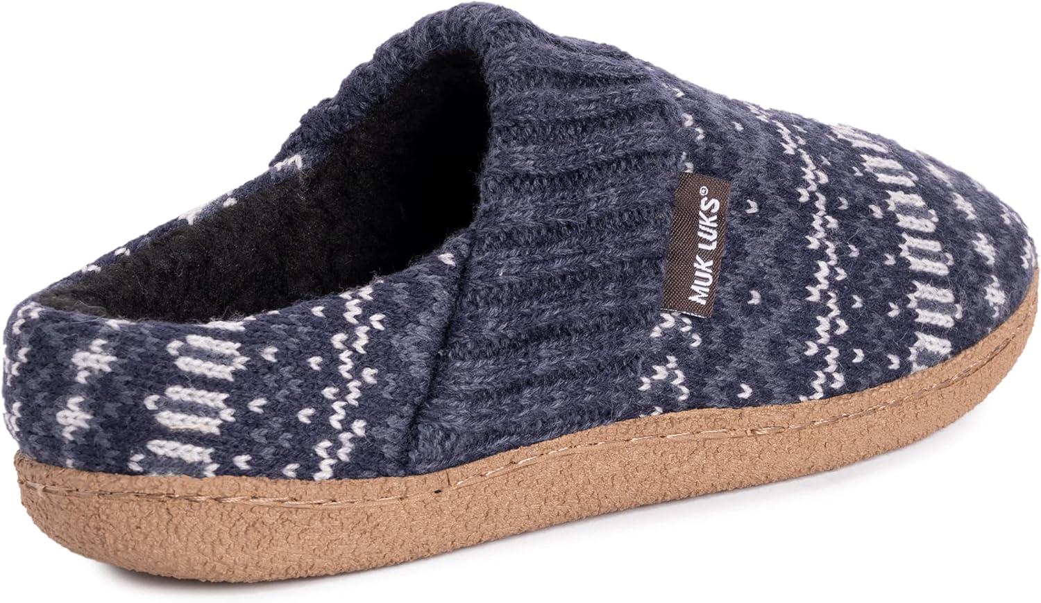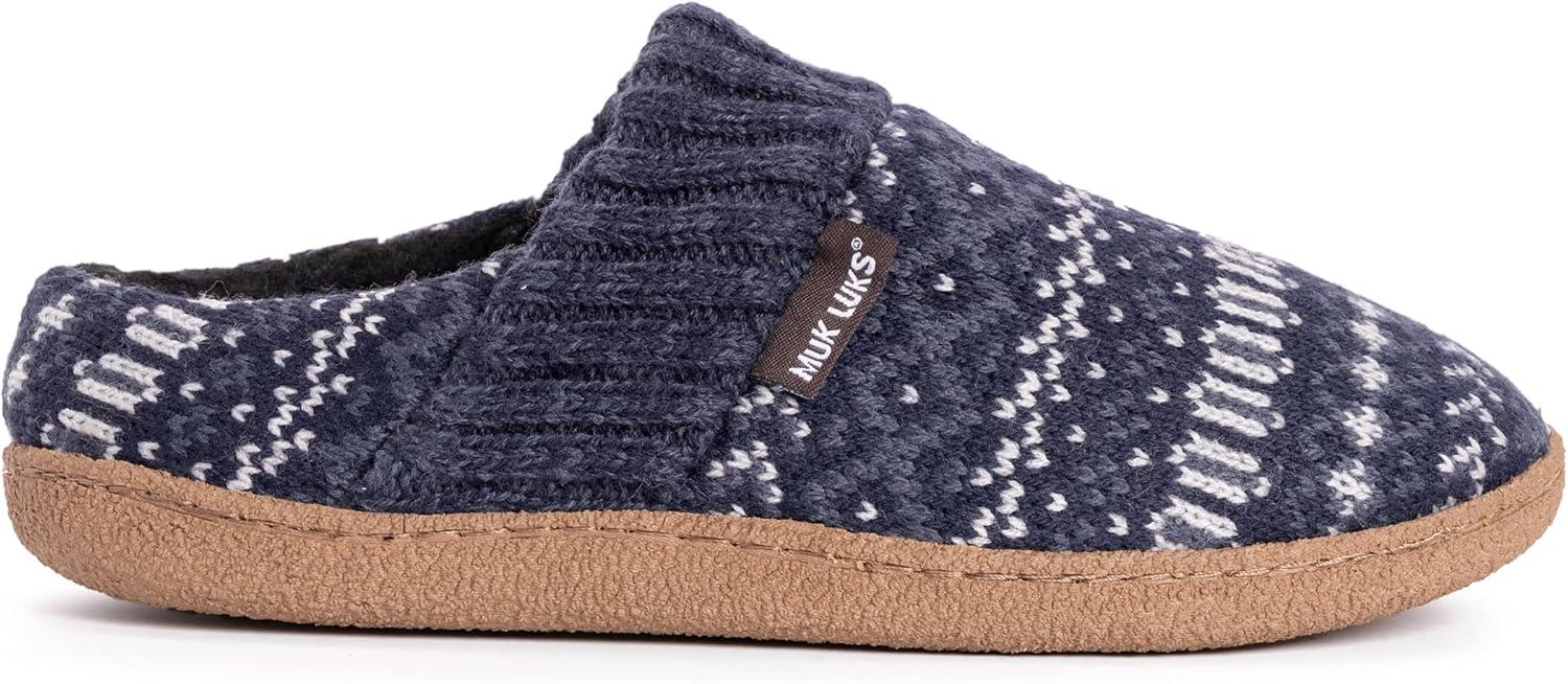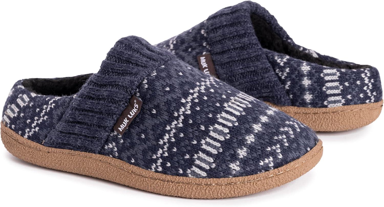 Slip into long lasting comfort with MUK LUKS® Men's Marcel Slippers. These cozy clog slippers will keep toes warm with soft faux shearling while memory foam insoles offer a soft cushion for your feet. Wipe with a damp cloth to clean, no bleach, lay flat to dry. Imported. -Indoor/Outdoor TPR Sole -100% Acrylic Upper -100% Polyester Faux Shearling Lining -Memory Foam Insole -Multiple Color Options – Men’s Sizes S (8-9), M (10-11), L (12-13)