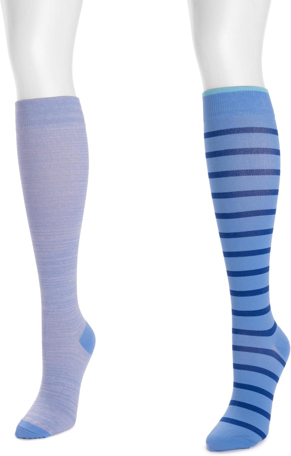 MUK LUKS womens 2 Pair Pack Nylon Compression Knee High Socks(Blue)