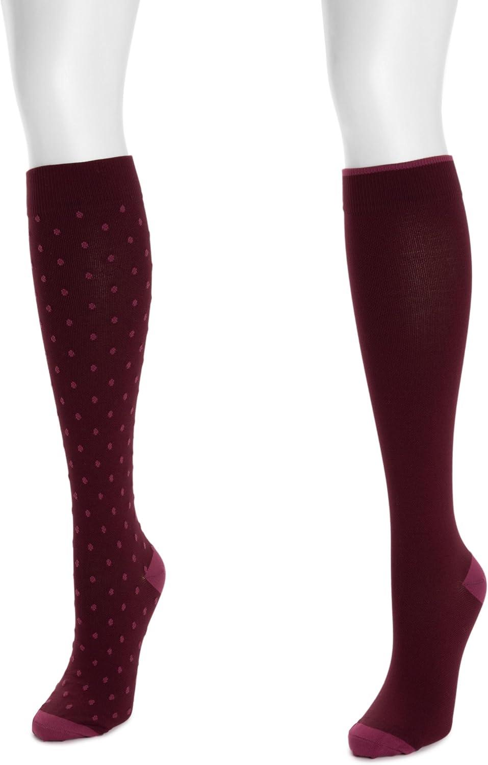 MUK LUKS womens 2 Pair Pack Nylon Compression Knee High Socks(Burgundy)