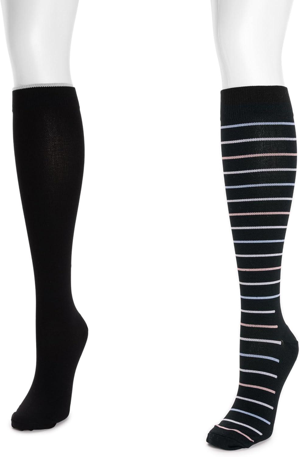 MUK LUKS womens 2 Pair Pack Nylon Compression Knee High Socks(Ebony/Pastel)
