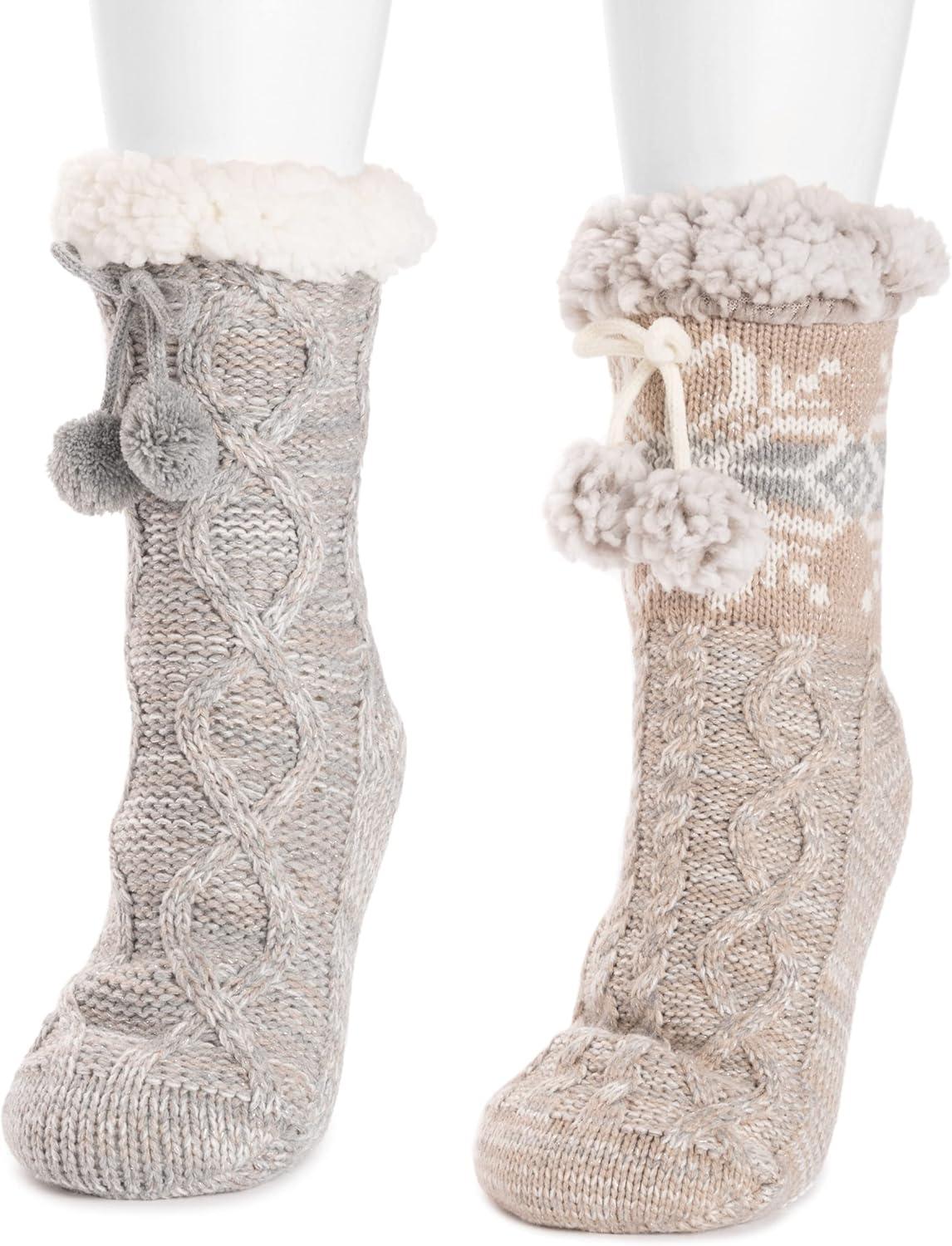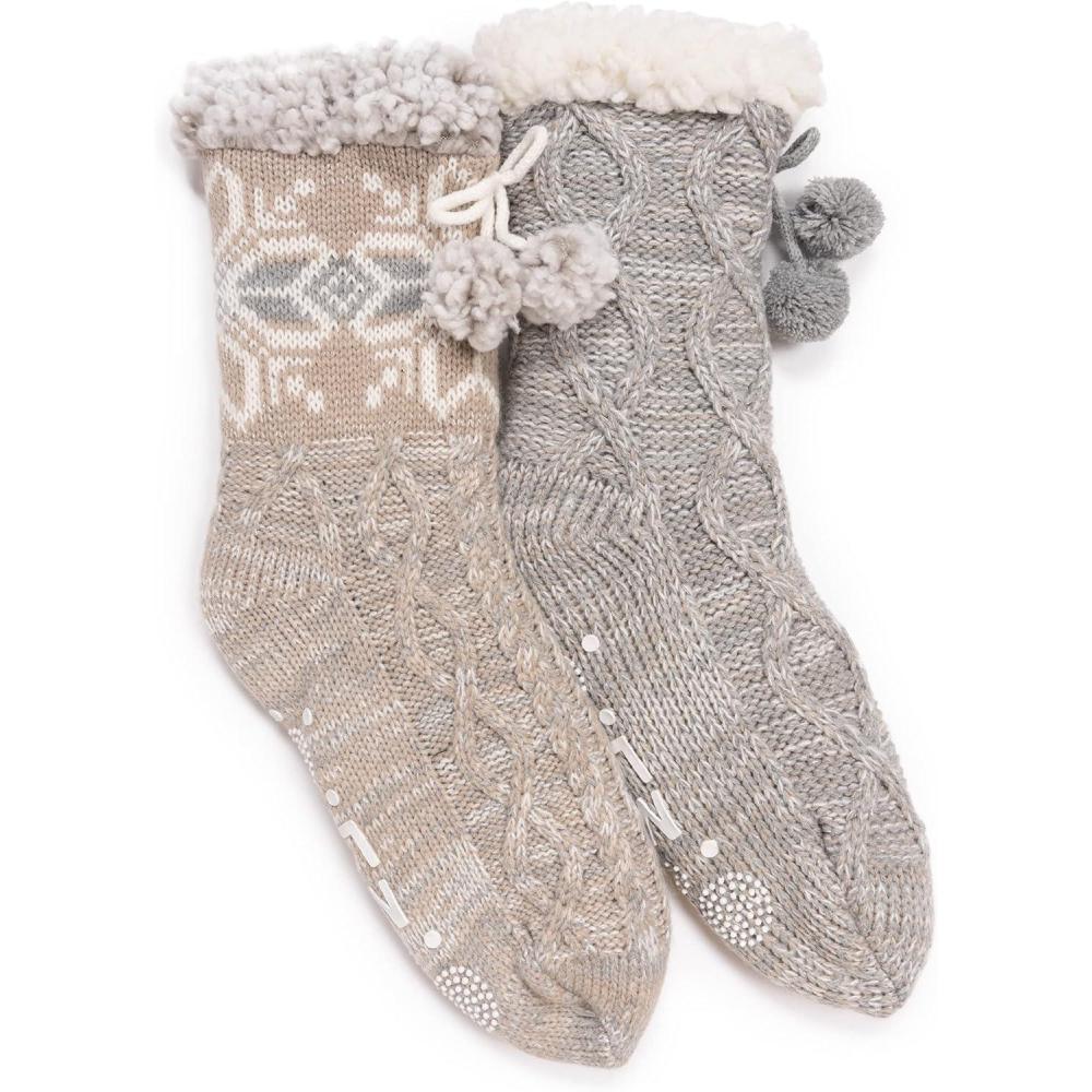 Cozy and warm, MUK LUKS® Women's 2 Pair Pack Tall Cabin Socks are the best for when temps drop. Sweet knits pair with ultra-soft faux fur to create a warm, comfortable sock you won’t want to take off. Machine wash cold on gentle cycle, no bleach, tumble dry low heat. Imported. – Non-Skid PVC Dot Sole – 100% Acrylic Knit – 100% Polyester Faux Fur Lining – 2 Pair Pack – Pom Detail – Multiple color options available – US Women's Sizes S/M (5-7), L/XL (8-10)