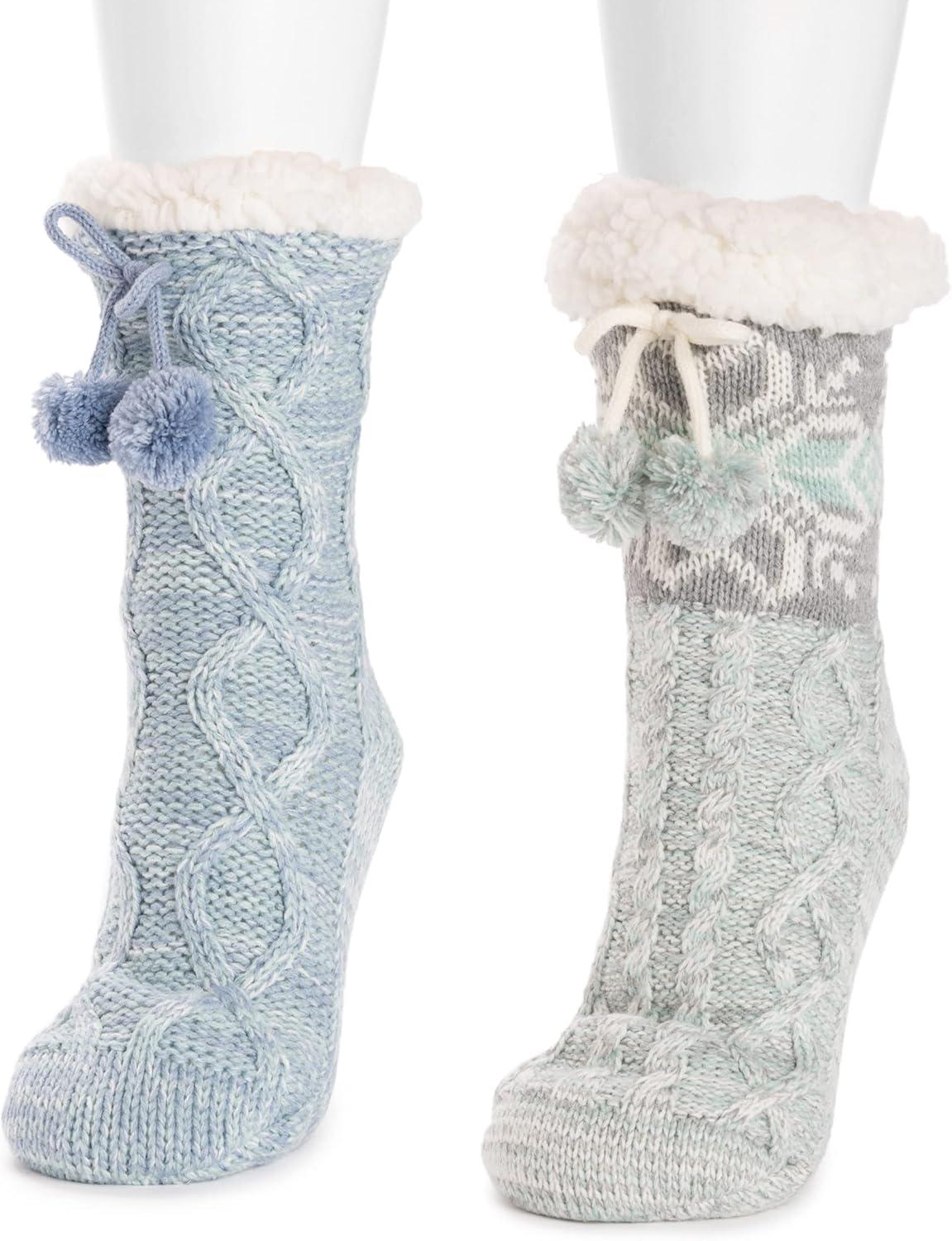 Cozy and warm, MUK LUKS® Women's 2 Pair Pack Tall Cabin Socks are the best for when temps drop. Sweet knits pair with ultra-soft faux fur to create a warm, comfortable sock you won’t want to take off. Machine wash cold on gentle cycle, no bleach, tumble dry low heat. Imported. – Non-Skid PVC Dot Sole – 100% Acrylic Knit – 100% Polyester Faux Fur Lining – 2 Pair Pack – Pom Detail – Multiple color options available – US Women's Sizes S/M (5-7), L/XL (8-10)