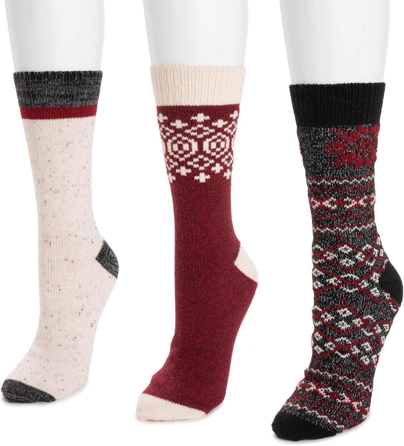 MUK LUKS Womens Boot Socks 3 Pair Pack(Ivory/Red/Grey)