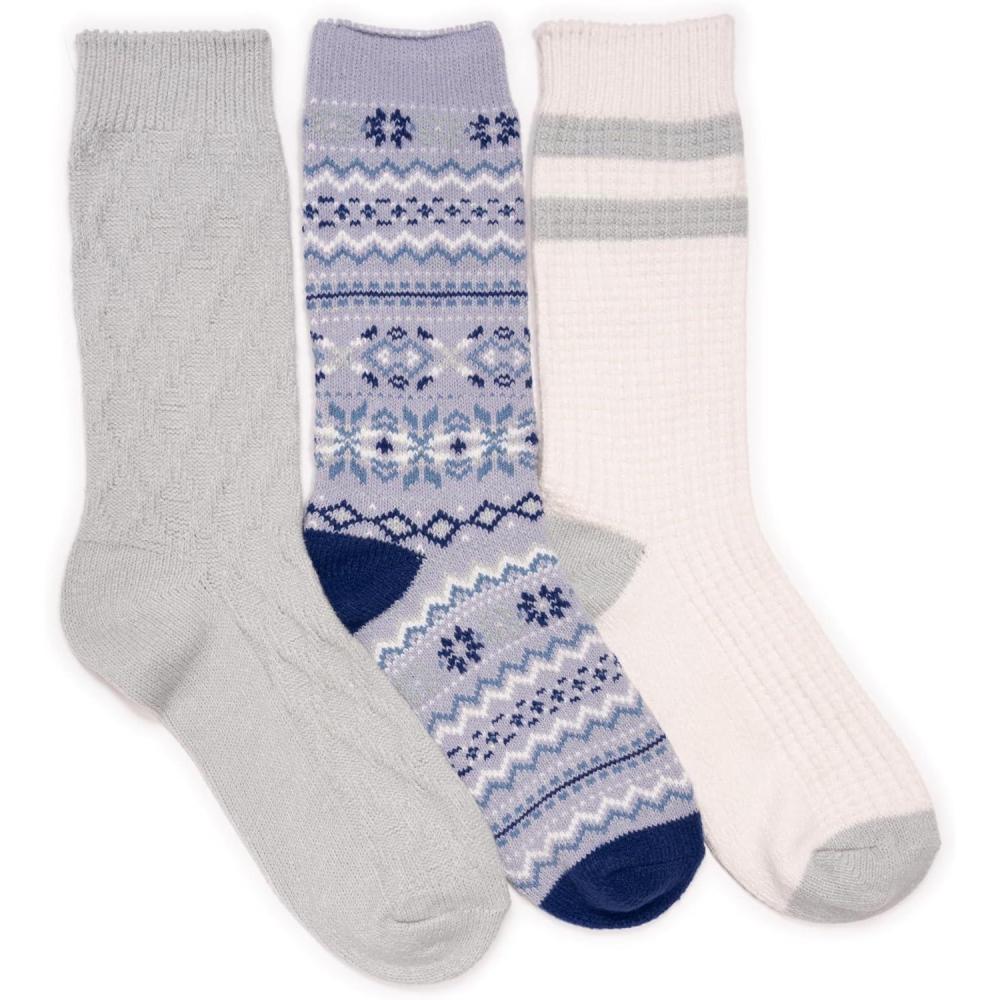 MUK LUKS womens Boot Socks 3 Pair Pack(Icy Blue)