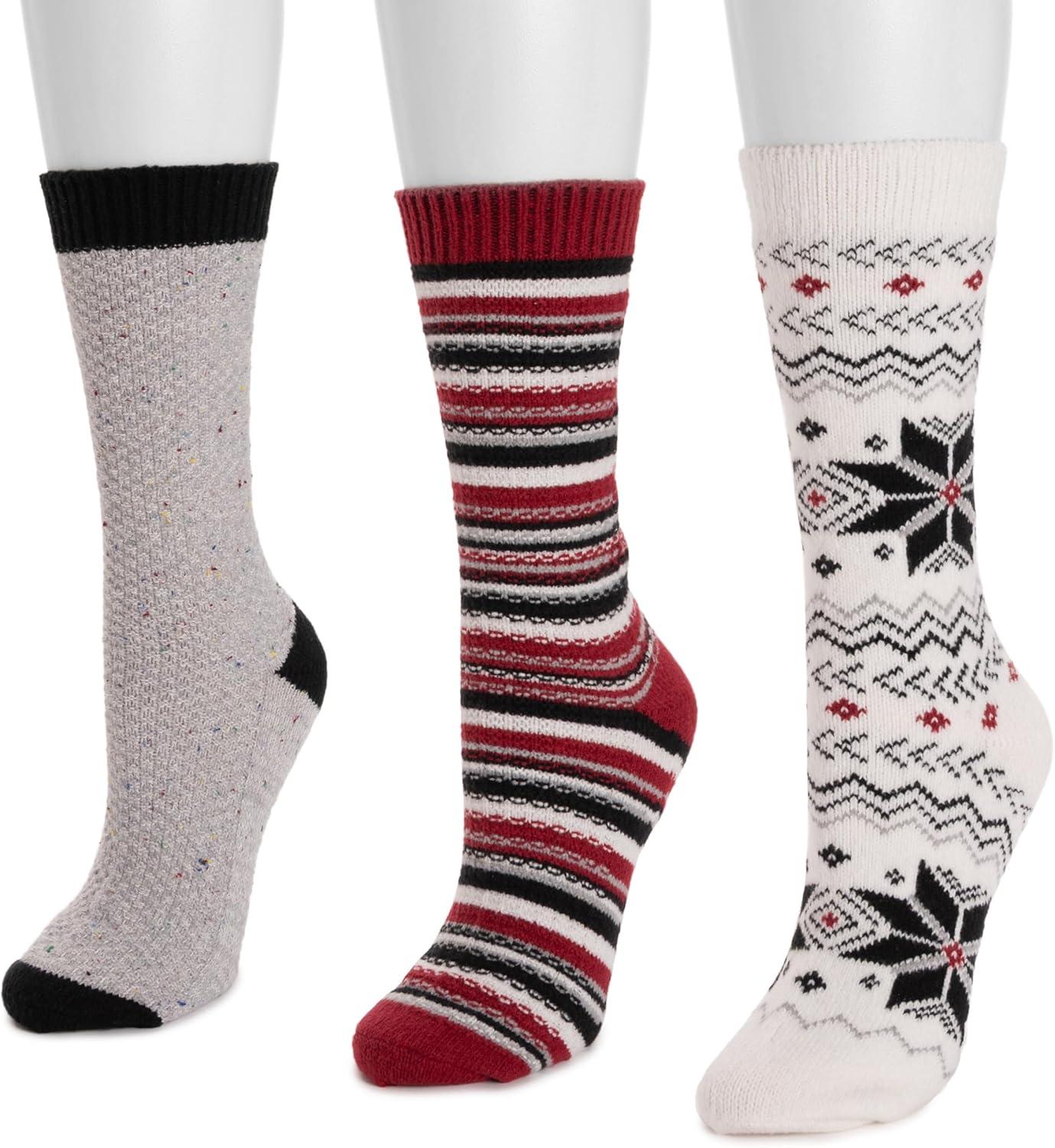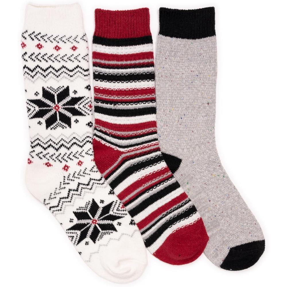 MUK LUKS Womens Boot Socks 3 Pair Pack(Ivory/Red/Grey)