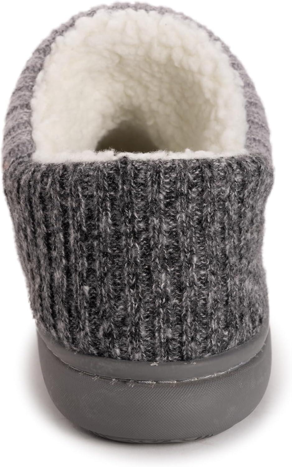 *Pull on these sweet sweater knit MUK LUKS® Callen Bootie Slippers for serious comfort *Synthetic upper *Slip-on fit *Warm sherpa lining *Foam footbed *Durable indoor/outdoor outsole *7/8″ heel height