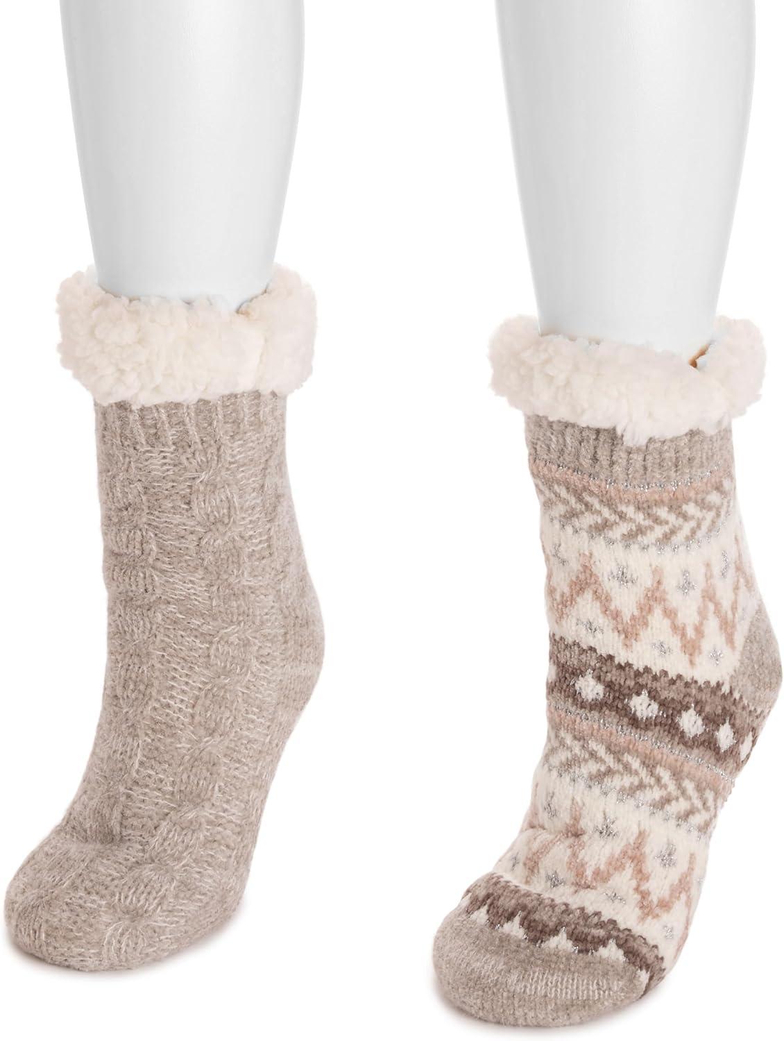 MUK LUKS Women’s Chenille Eyelash Mix Cabin Sock (2 Pair Pack)(Grey)