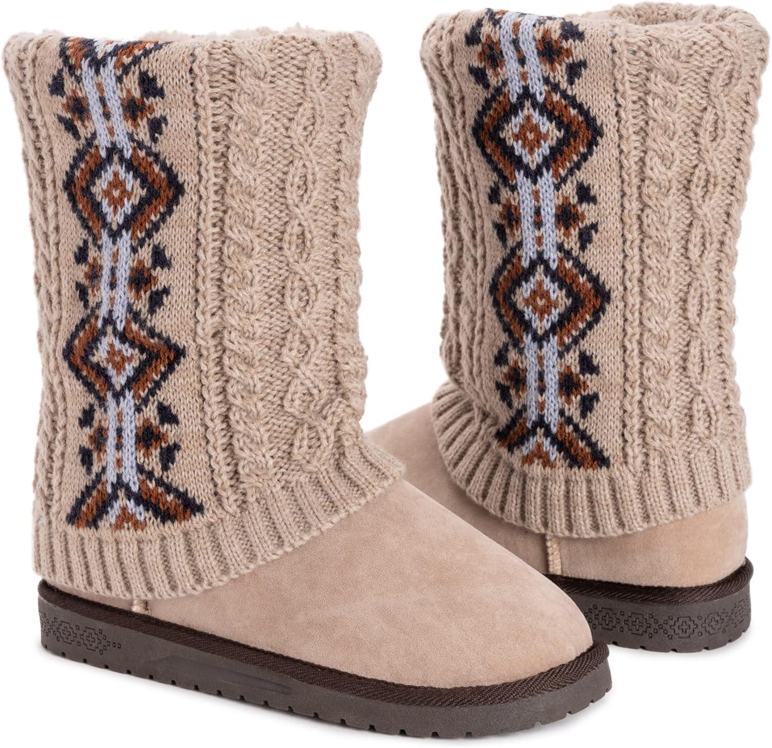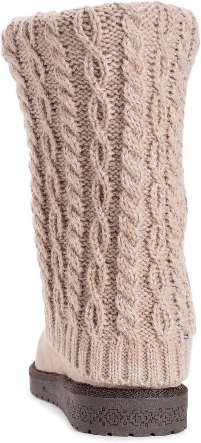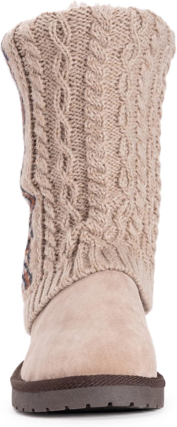 Essentials by MUK LUKS Women's Cheryl Boots can’t be beat. Cozy sweater knit design and soft faux fur lining blends everyday comfort with on-trend style. Wipe with a damp cloth to clean, no bleach, lay flat to dry. Imported. – Durable TPR Sole – 100% Polyester Insole – 100% Acrylic Knit -Foam Insole -100% Polyester Faux Suede Upper – 100% Polyester Faux Fur Lining – Water Resistant – Multiple color options available – Women’s Whole Sizes 6-11 -Half Sizes Size Up