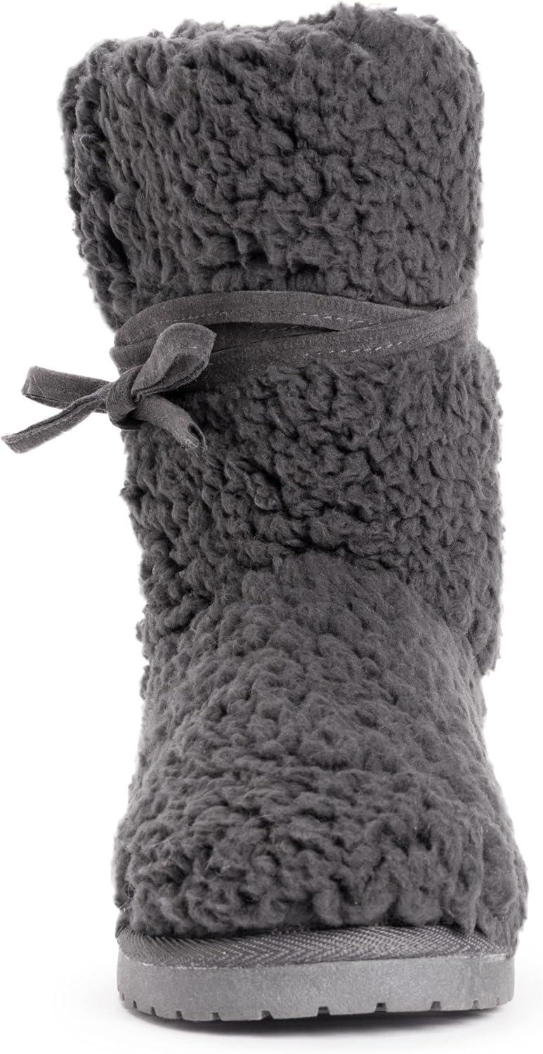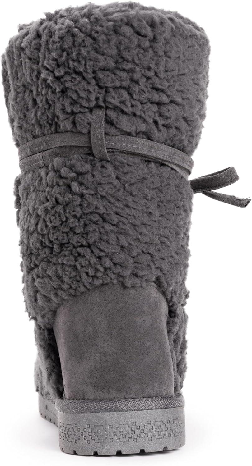Soft and sweet Essentials by MUK LUKS Clementine Boots are a pretty way to warm up. Beautiful knits and cute tie detail pull your look together while durable sole keeps feet warm and dry. Spot clean, no bleach, dry flat. Imported. -TPR Sole -100% Polyester Faux Fur Lining -100% Acrylic Knit Upper -Foam Insole -Women's Whole sizes 6-11 -Half Sizes Size Up -Multiple color options