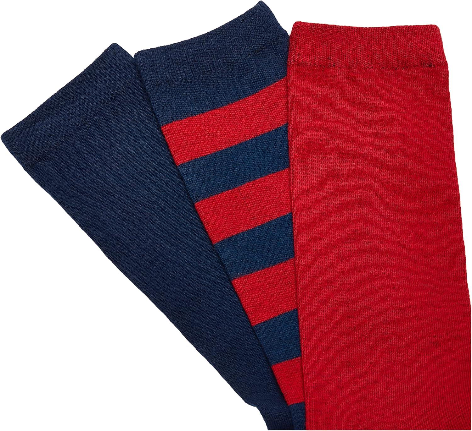 Muk Luks Women’s Game Day Sport Crew Socks (Pack of Three Pairs)(Blue/Red)