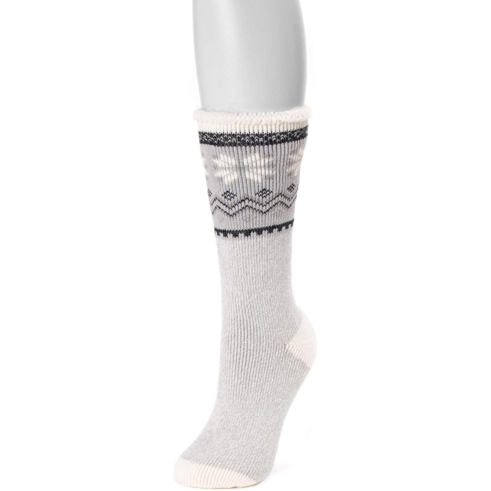 MUK LUKS women's heat retainer thermal socks keep the cold out and the heat in. Advanced thermal technology & heat retaining qualities make this the warmest pair of socks you'll ever wear. Flexible fit & right amount of cushiness for all-day comfort. Machine wash on gentle cycle, no bleach, tumble dry low heat. Imported. – 91% acrylic, 8% Polyester, 1% Spandex upper – multiple color options available – OSFM