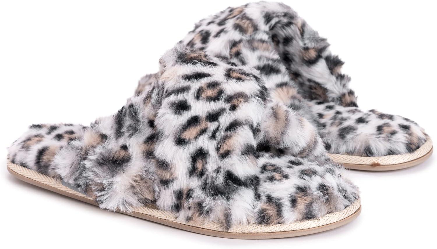 MUK LUKS Women’s Kathy Ireland Daisy Slide Slipper(Snow Leopard)
