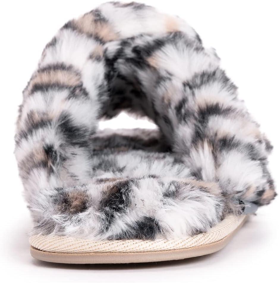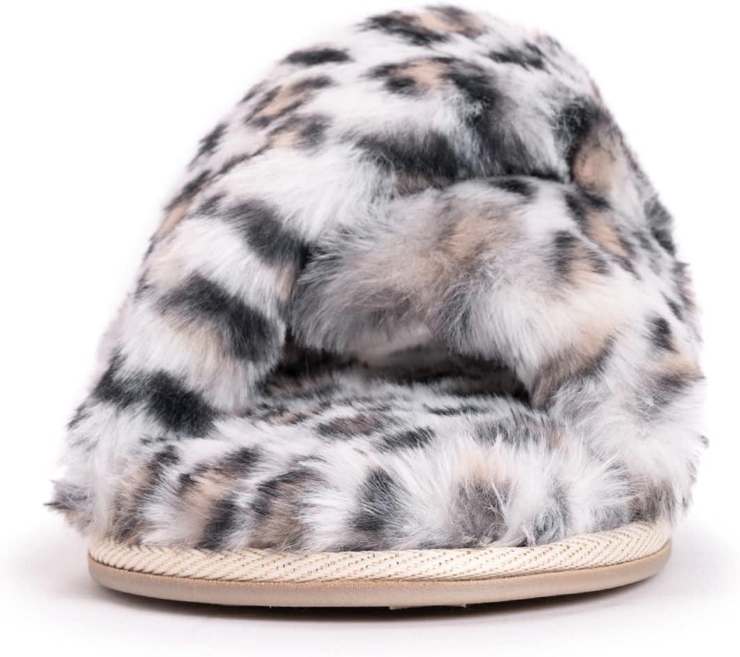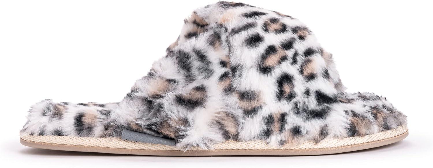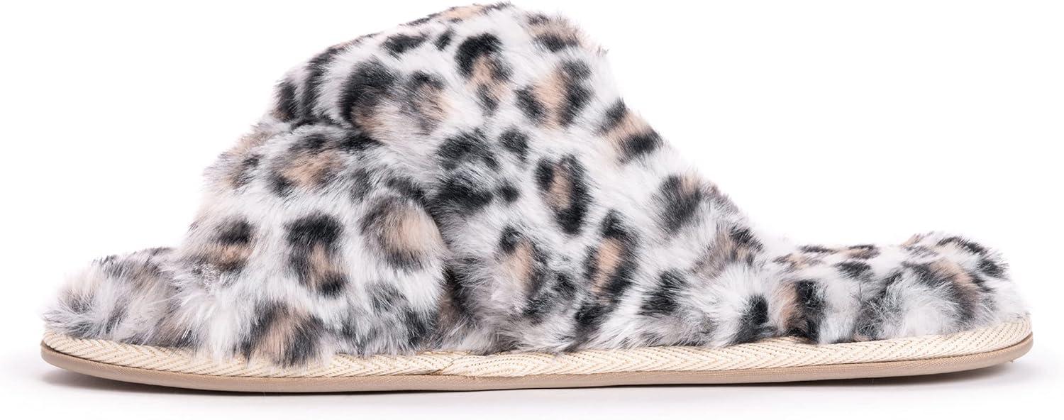 MUK LUKS Women's Kathy Ireland Daisy Slide Slipper(Snow Leopard)