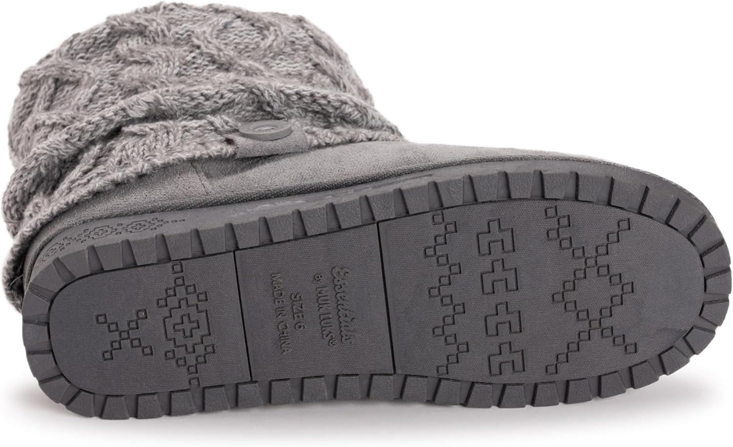 Tackle cold weather this season with Essentials by MUK LUKS Women's Laurel Boots. A classic ankle bootie with a decorative knit overlay and pull-on tab lets you slip into the plush comfort of these casual booties with ease.