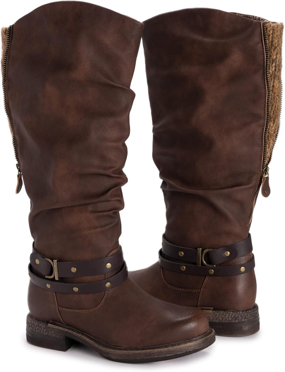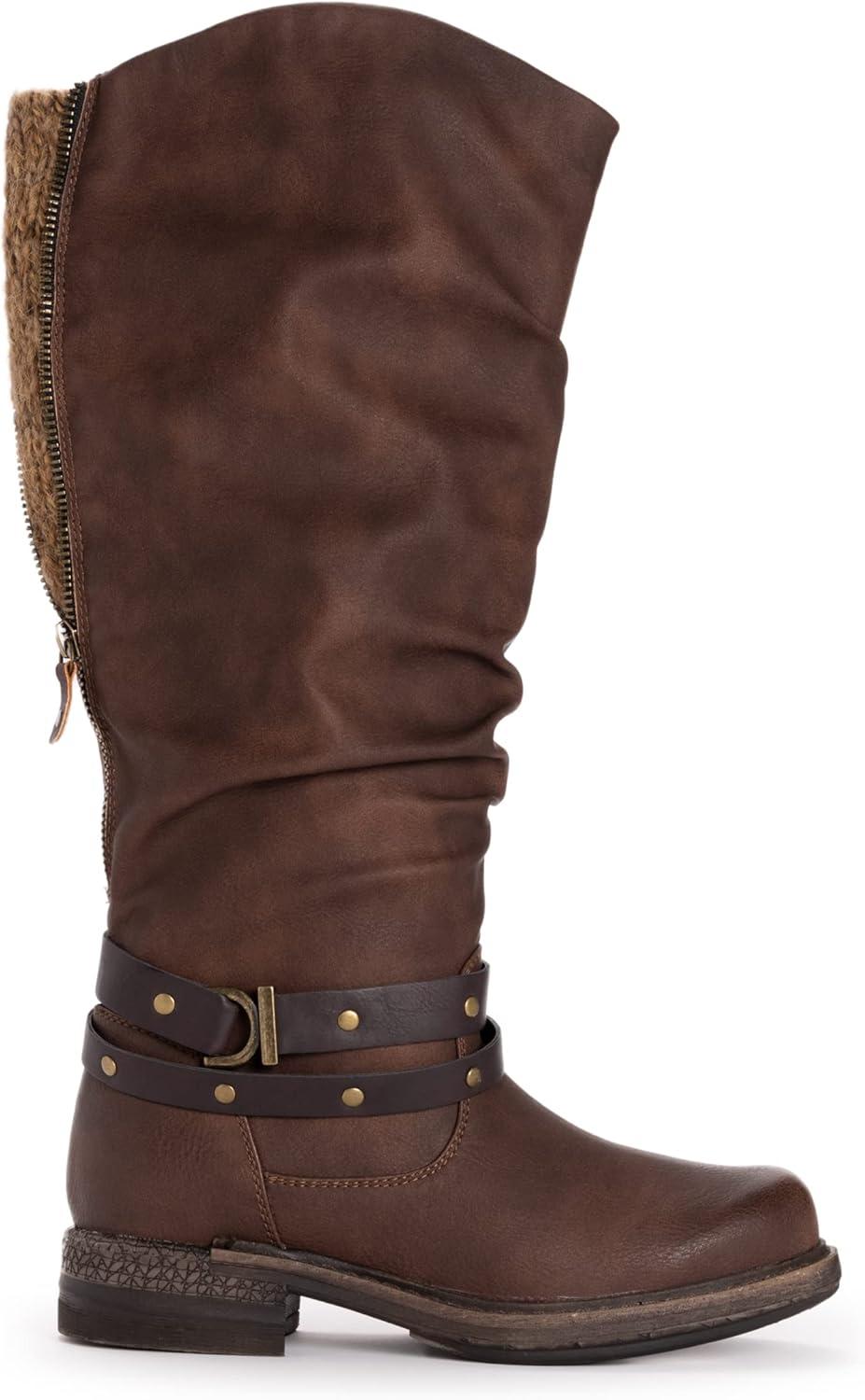 LUKEES by MUK LUKS Women's Logger Victoria Boots are the perfect fall weather stable. These tall water-resistant boots let you mix up your style with sweet knit accents and buckle detail. Wipe with a damp cloth to clean, no bleach, lay flat to dry. Imported. – Durable TPR Sole – 100% Polyester Insole – 100% Polyurethane Upper – 100% Polyester Lining -Water Resistant – Memory Foam Insole – Multiple Color Options – Women’s Whole Sizes 6-11