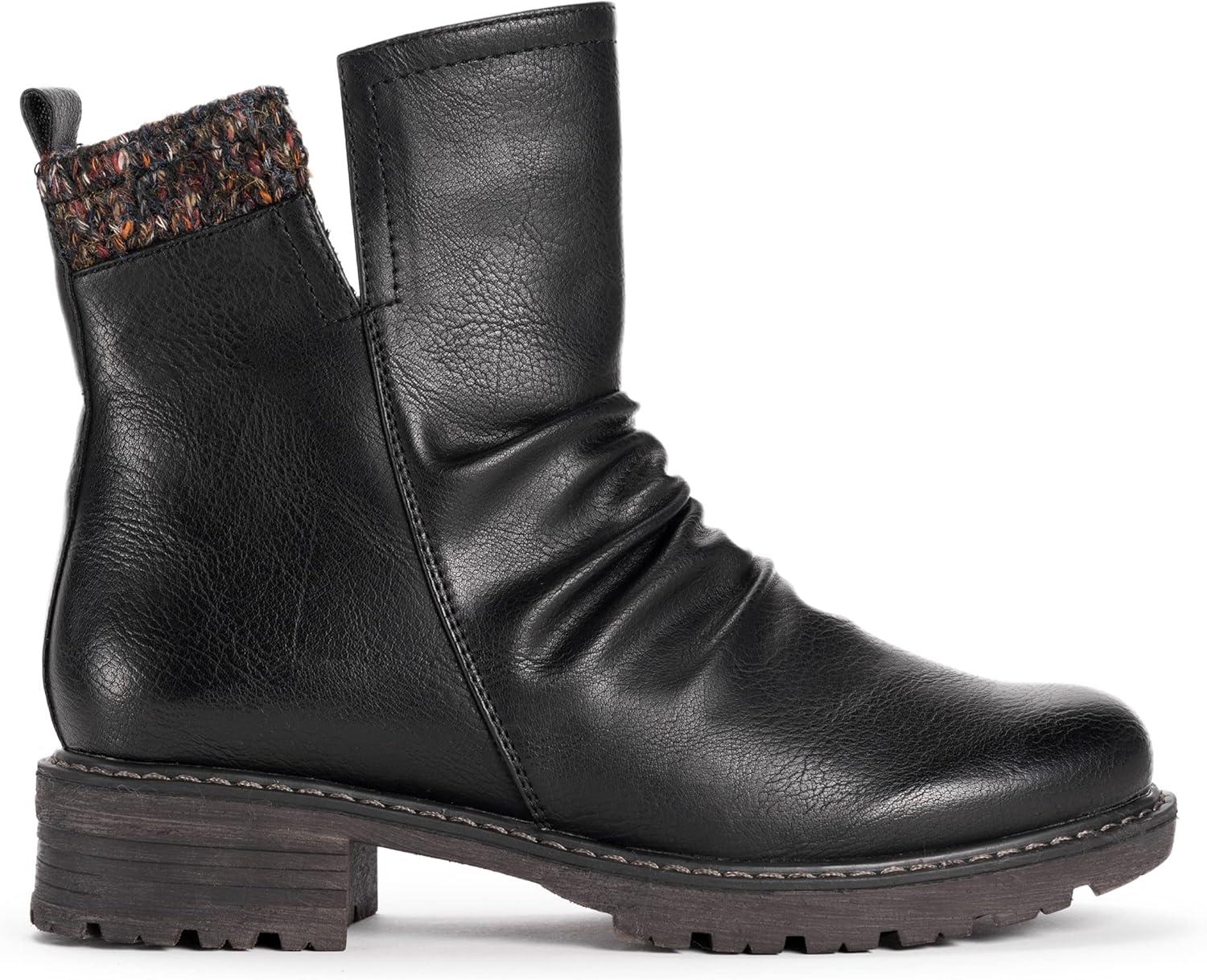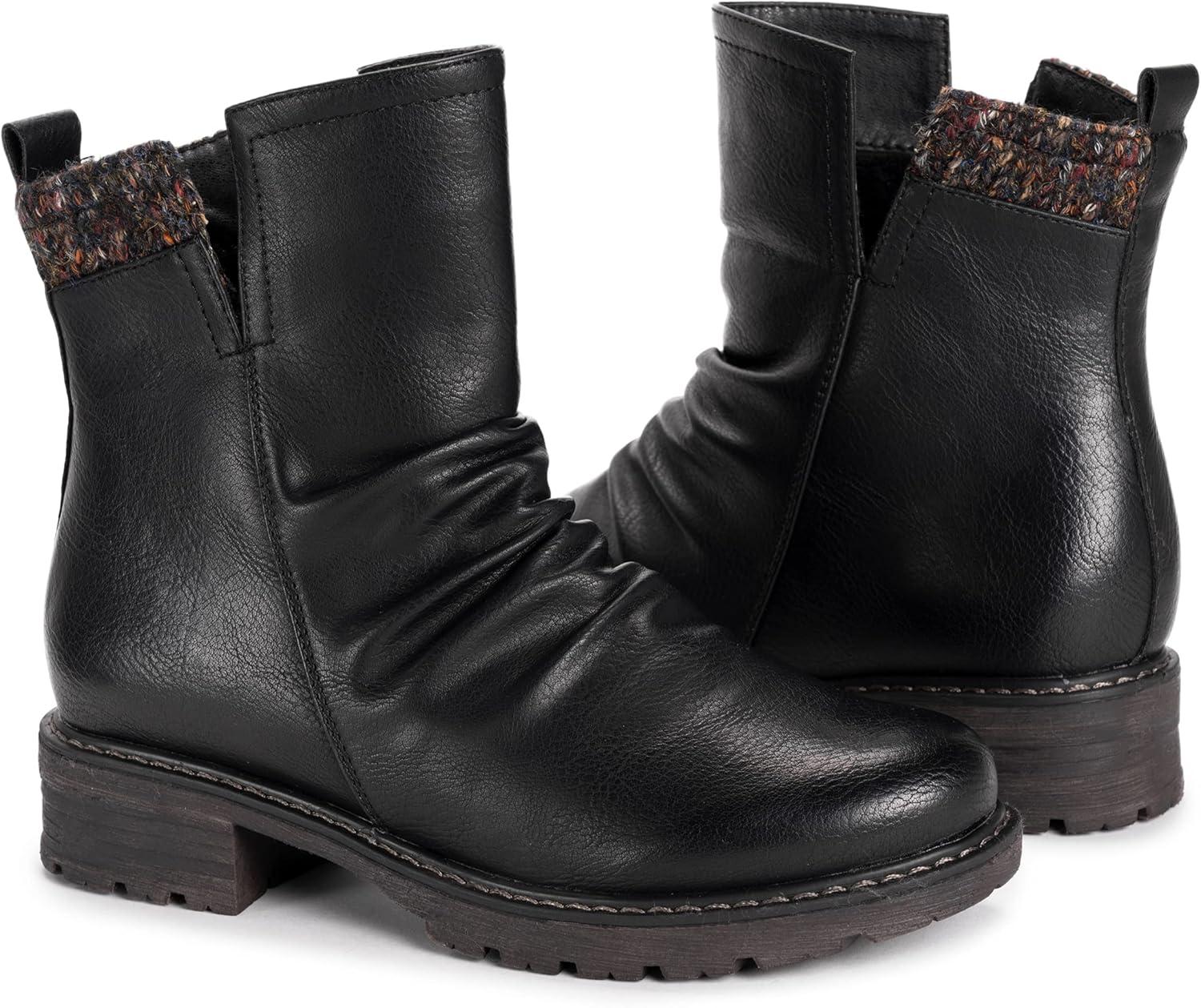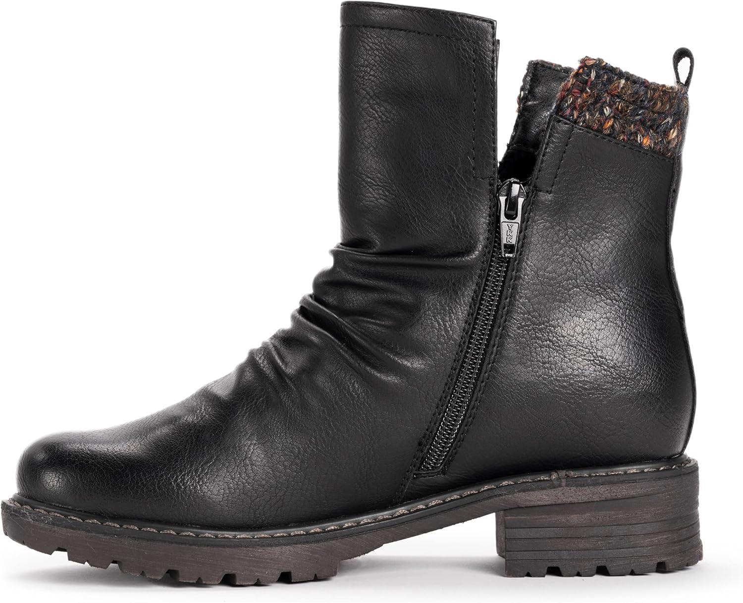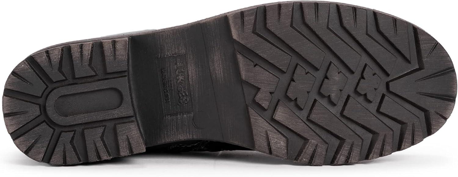 Pull on LUKEES by MUK LUKS® Women's Logger Banff Boots for cute and casual comfort. With sweet knit accents and easy pull-on style, these ankle booties will keep feet comfortable all day long with memory foam insoles. Wipe with a damp cloth to clean, no bleach, lay flat to dry. Imported. – Durable TPR Sole -100% Polyurethane Upper -100% Acrylic Knit 100% Polyester Faux Fur Lining -100% Polyester Brushed Tricot -Memory Foam Insole – Multiple color options available – Women’s Whole Sizes 6-11