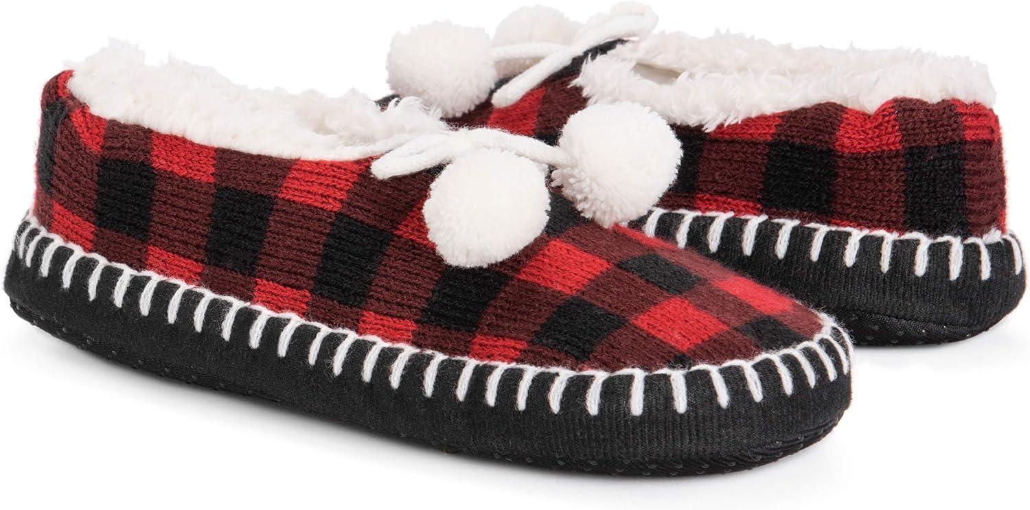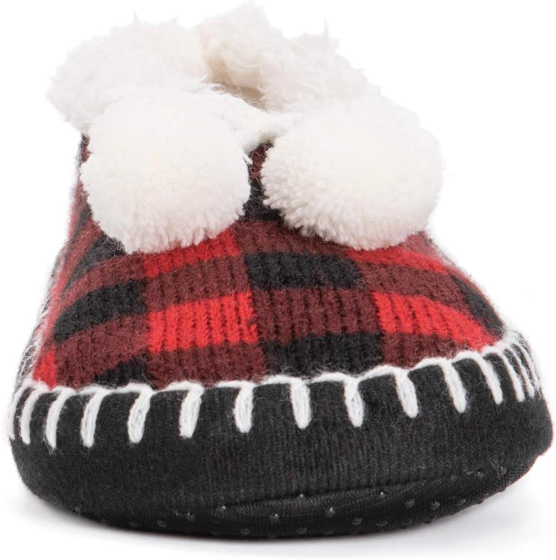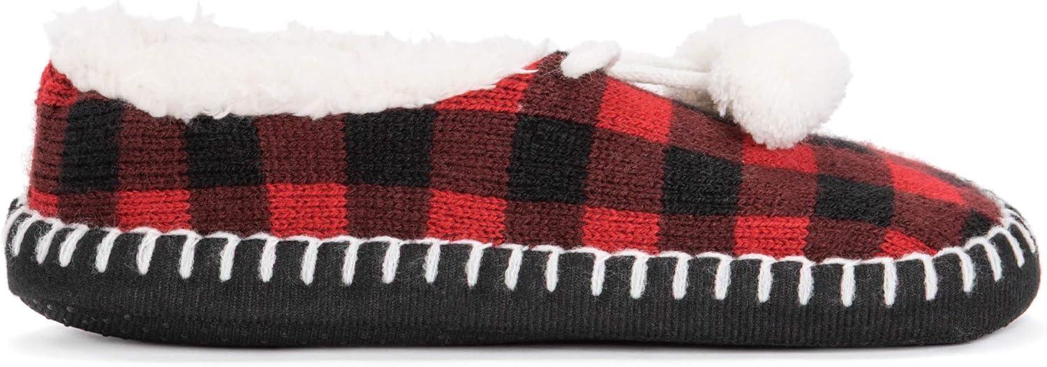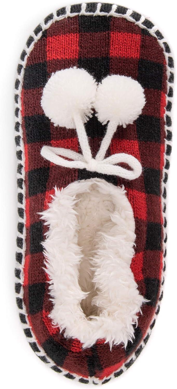 MUK LUKS Women's Pom Ballerina Slippers Sock(Red/Black)
