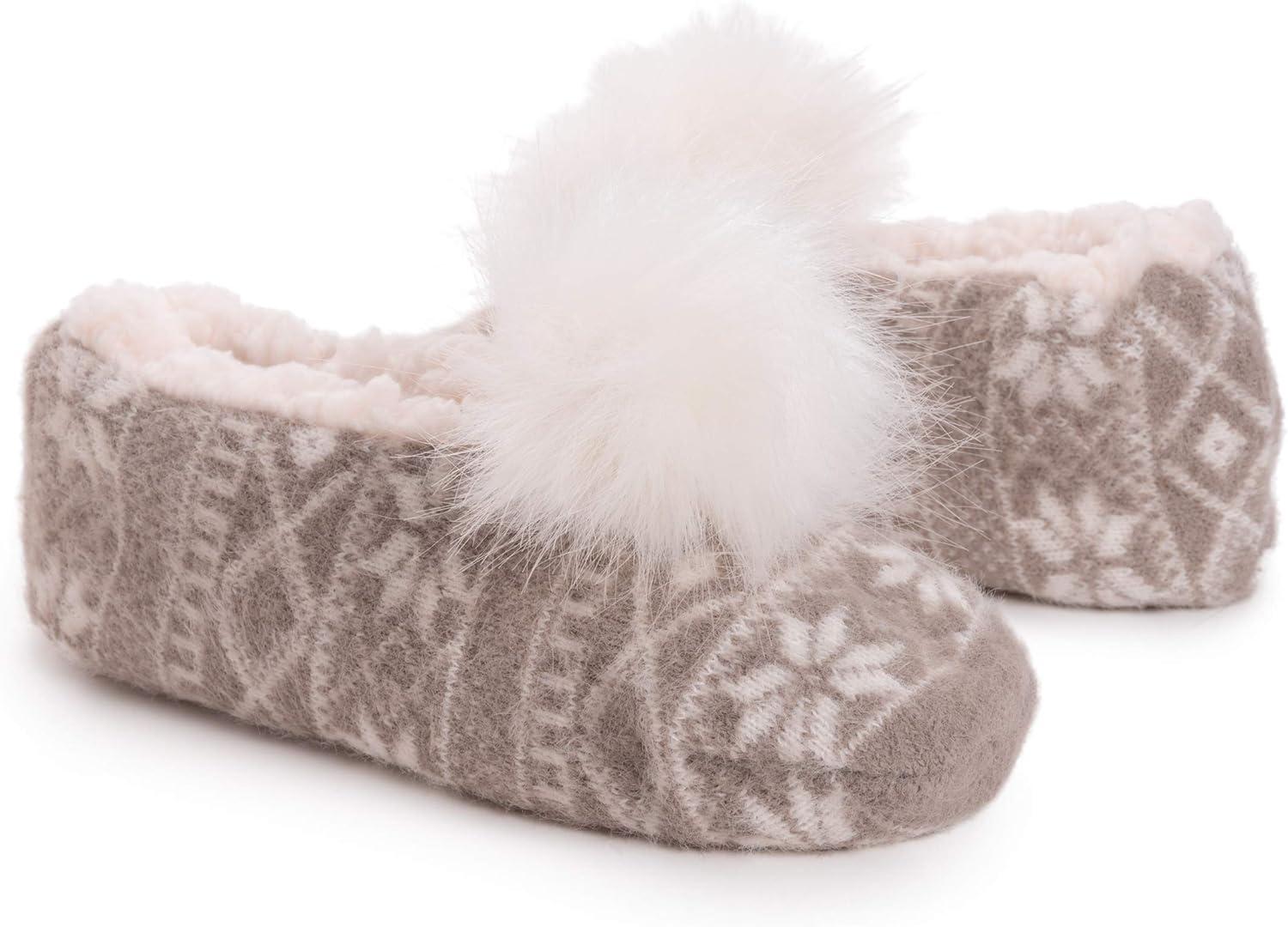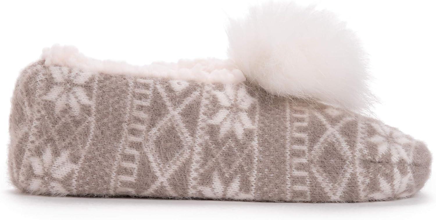 MUK LUKS Women's Pom Ballerina Slippers(Beige)