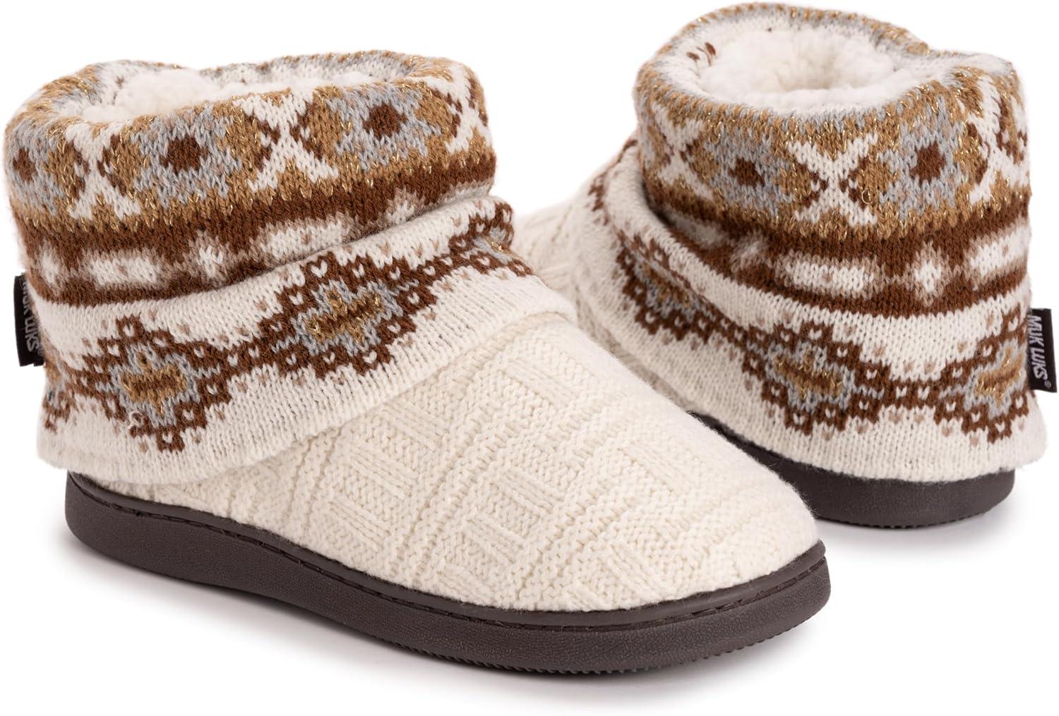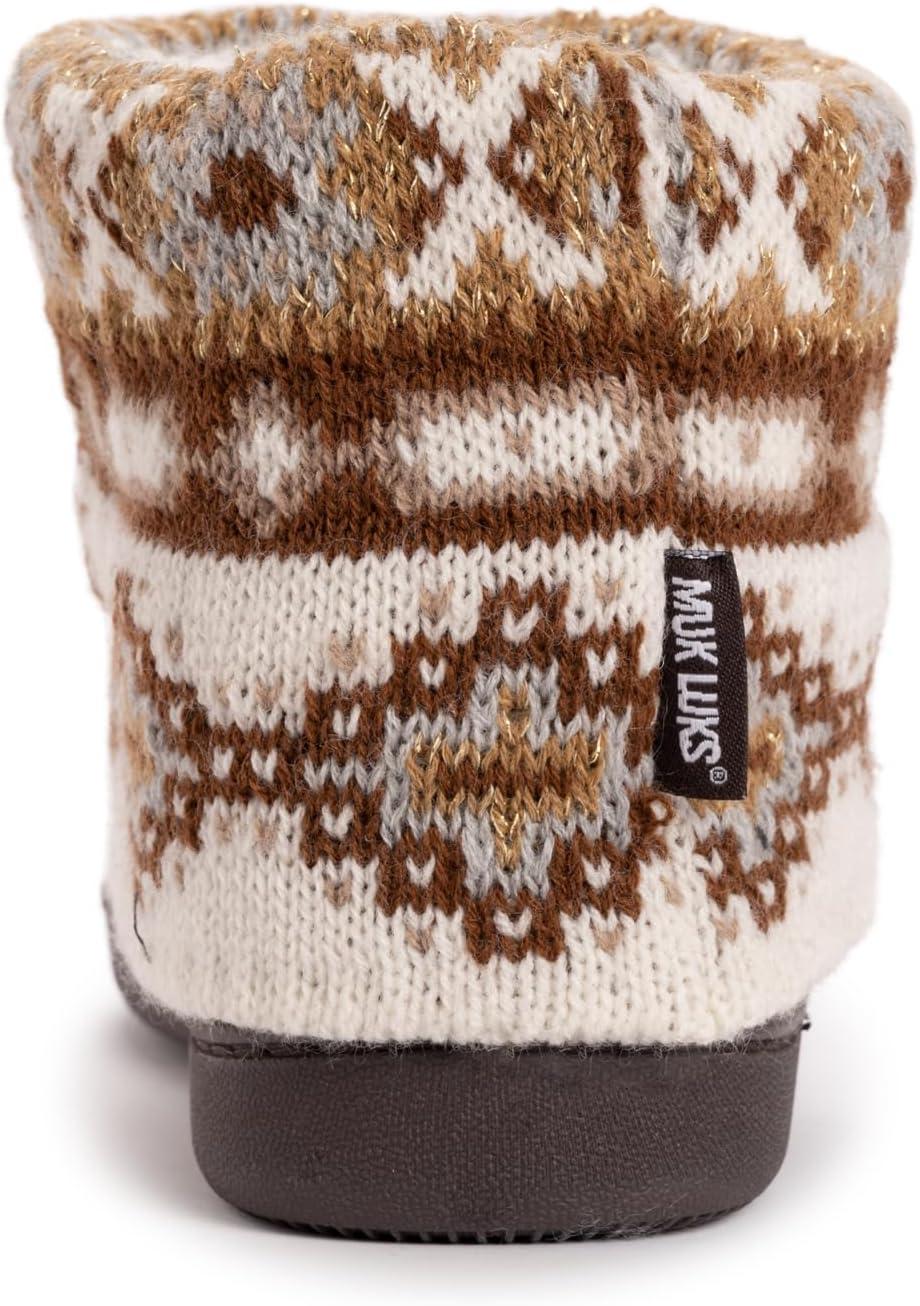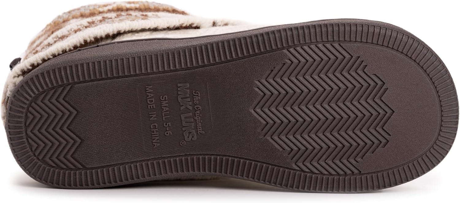 Slip into these cozy knit MUK LUKS Rochelle Slippers when temps start to drop. These ankle slipper booties will warm you up and treat your feet with comfortable foam insoles and durable indoor/outdoor sole. Wipe with damp cloth, do not bleach, lay flat to dry. Imported. Details: -Indoor/Outdoor TPR Sole -100% Polyester Brushed Tricot Insole -100% Acrylic Upper -100% Polyester Faux Fur Lining -Foam Insole -Multiple Color Options -US Women's whole sizes S (5-6), M (7-8), L (9-10), XL (11-12)