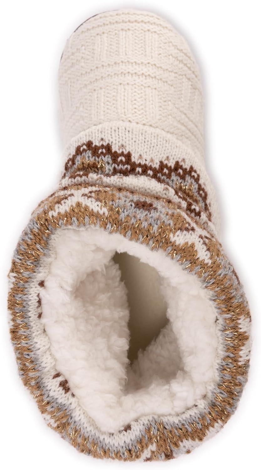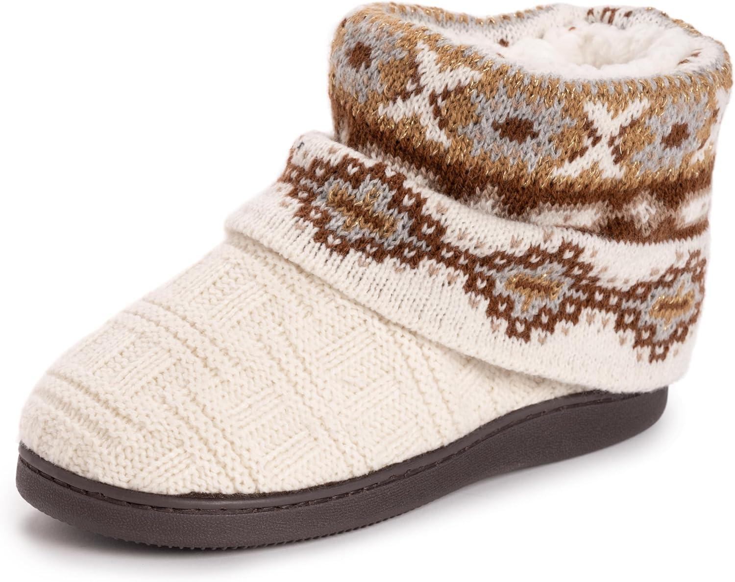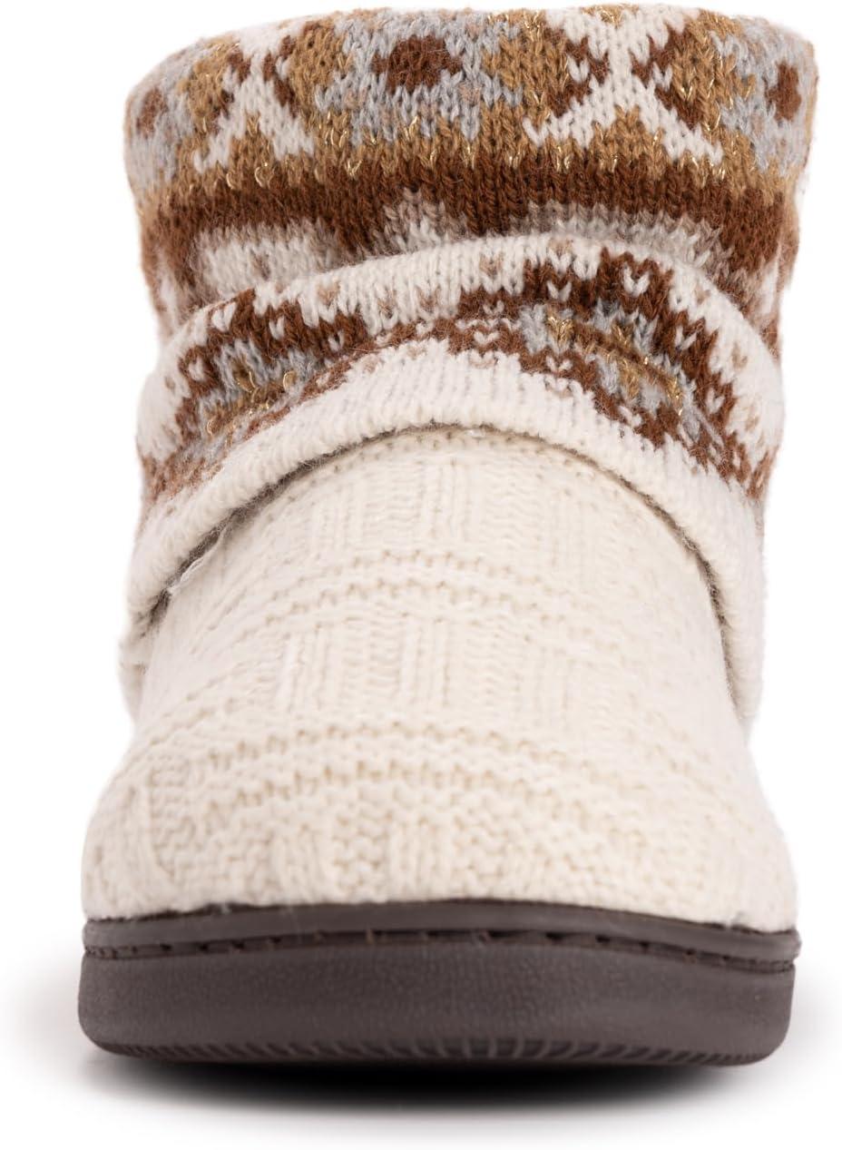 Slip into these cozy knit MUK LUKS Rochelle Slippers when temps start to drop. These ankle slipper booties will warm you up and treat your feet with comfortable foam insoles and durable indoor/outdoor sole. Wipe with damp cloth, do not bleach, lay flat to dry. Imported. Details: -Indoor/Outdoor TPR Sole -100% Polyester Brushed Tricot Insole -100% Acrylic Upper -100% Polyester Faux Fur Lining -Foam Insole -Multiple Color Options -US Women's whole sizes S (5-6), M (7-8), L (9-10), XL (11-12)