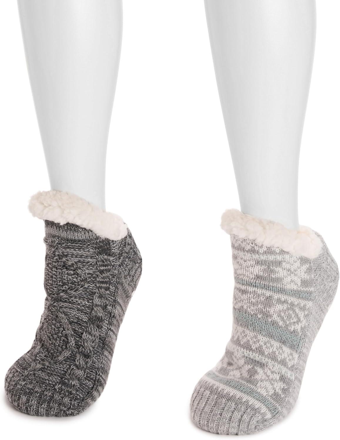 MUK LUKS Women's Shortie Cabin Sock (2 Pair Pack)(Grey)