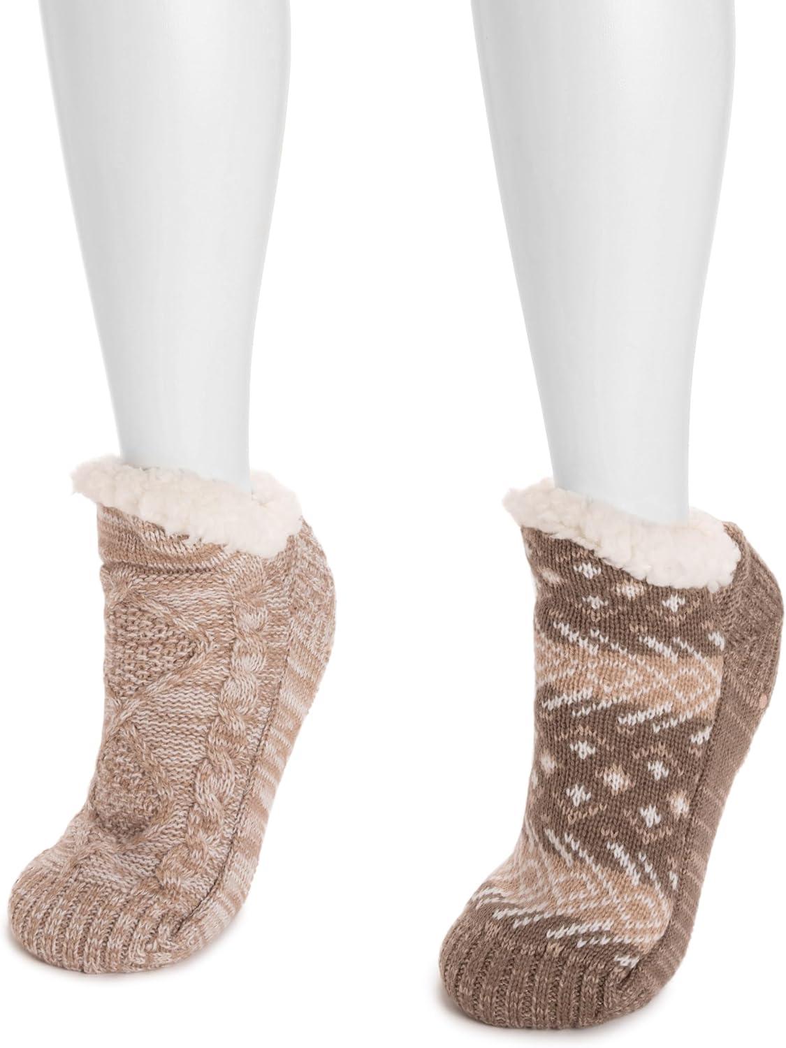 MUK LUKS Women’s Shortie Cabin Sock (2 Pair Pack)(Taupe)