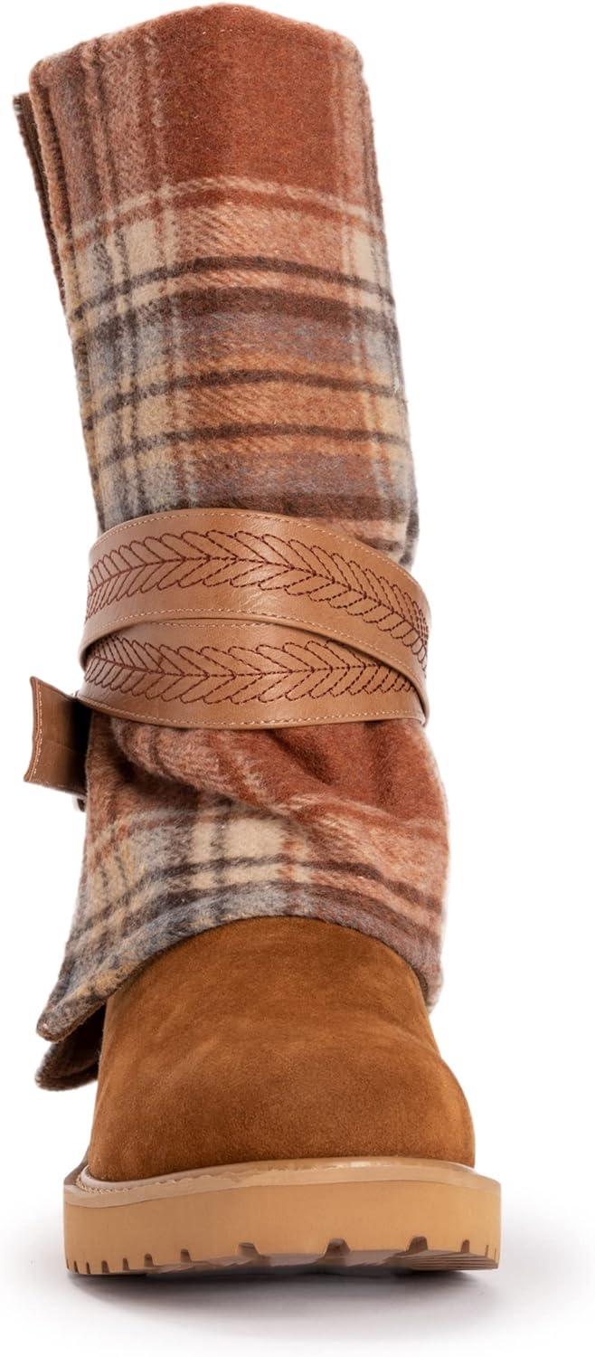 Plush & warm, MUK LUKS Women's Slope Nikki Boots blend luxe comfort with fashionable style. A faux suede belt wraps our fun pattern sweater detail for a twist on a classic pull-on boot. Wipe with a damp cloth to clean, no bleach, lay flat to dry. Imported. – Treaded EVA Sole – 100% Polyester Faux Suede Upper – 100% Polyester Faux Fur Luxe Lining – 100% Polyester Faux Fur Luxe Insole – Memory Foam Insole – Multiple Color Options – Women’s Whole and Half Sizes 6-11 – Extended Wide Sizes Available