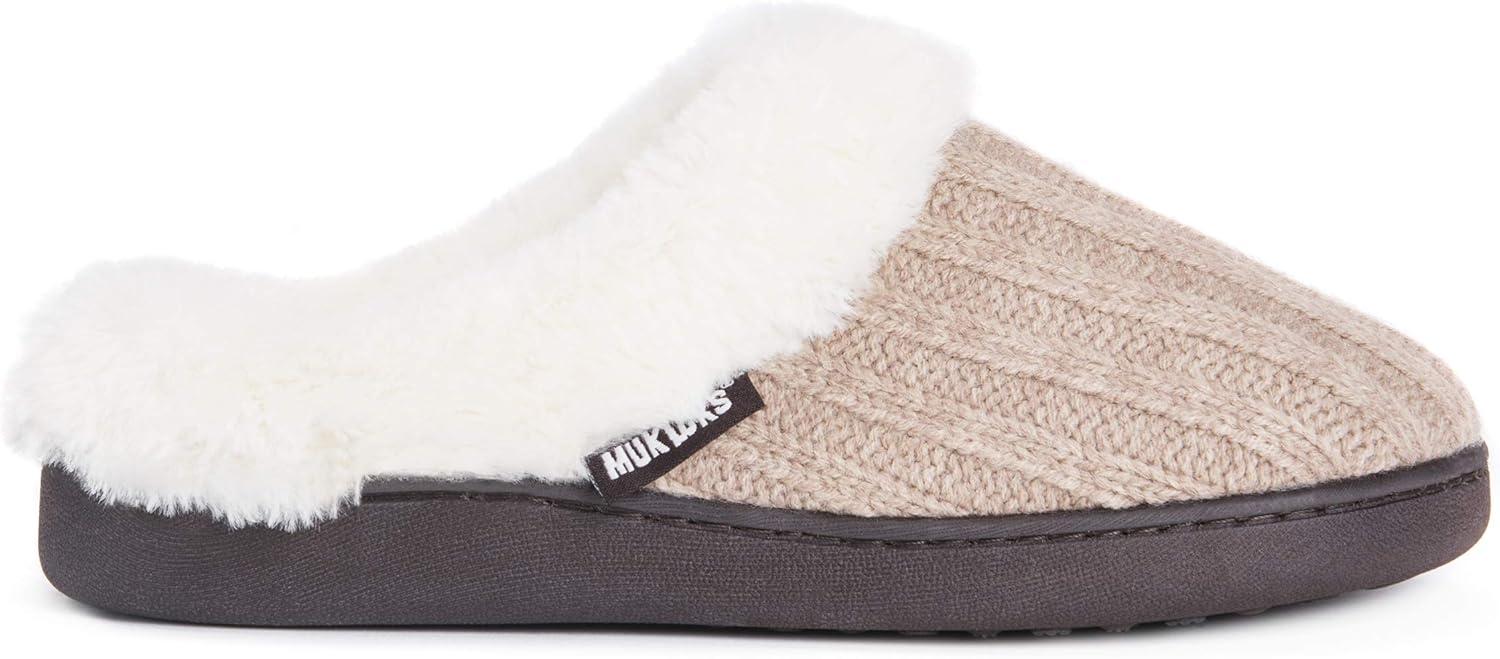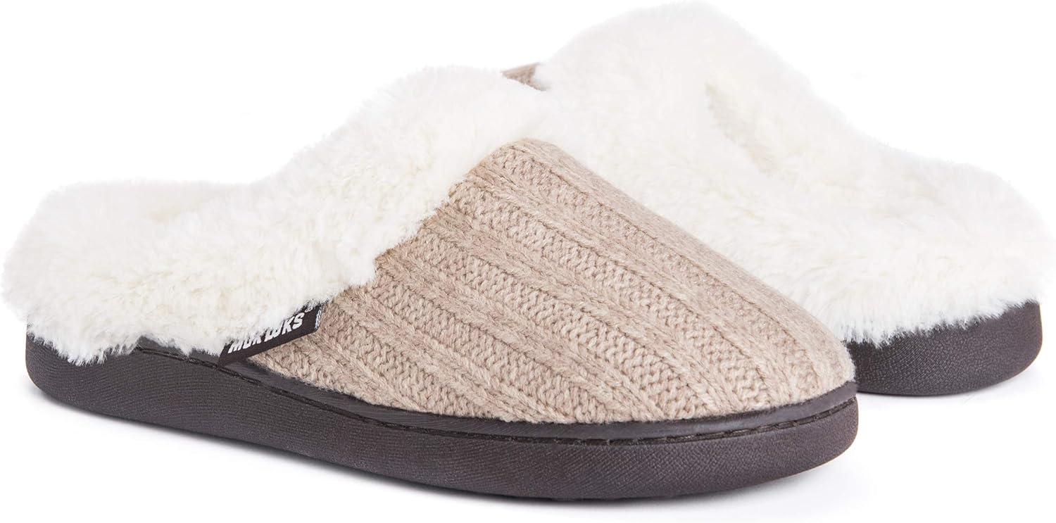 Slip into MUK LUKS Suzanne Clog Slippers and let the comfy foam insole relax your feet while soft faux fur lining keeps toes warm this cold weather season. Wipe with damp cloth, do not bleach, dry flat. Imported. Details: -100% Acrylic Upper -100% Polyester Faux Fur Lining -Indoor/Outdoor TPR Sole -Available in multiple color options -Women's sizes S (5-6), M (7-8), L (9-10), XL (11-12)