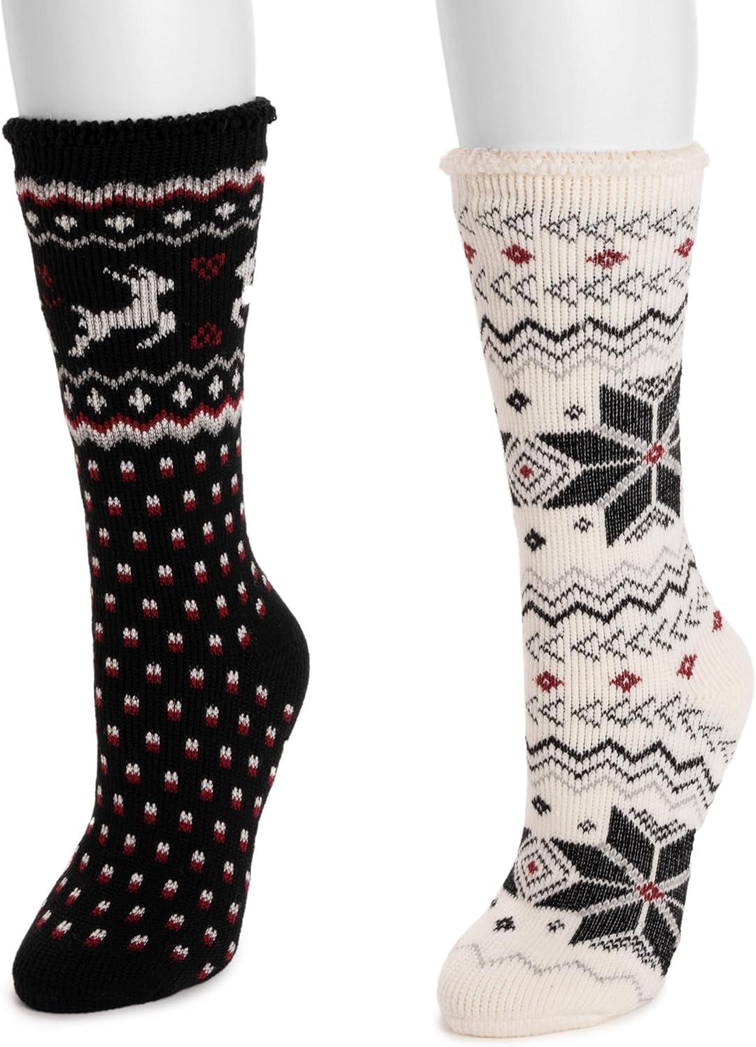 MUK LUKS womens Tall Heat Retainers (2 Pair Pack)(Black/Red)