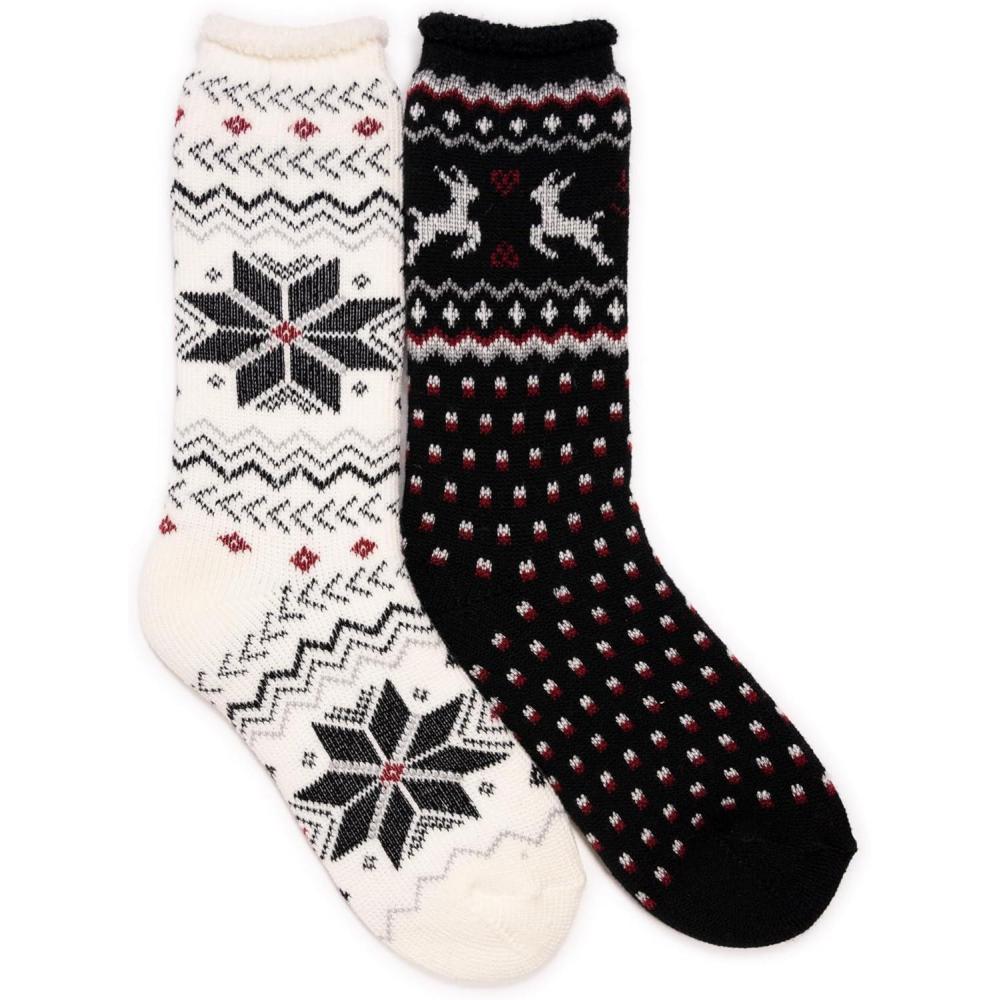 MUK LUKS womens Tall Heat Retainers (2 Pair Pack)(Ivory/Black)