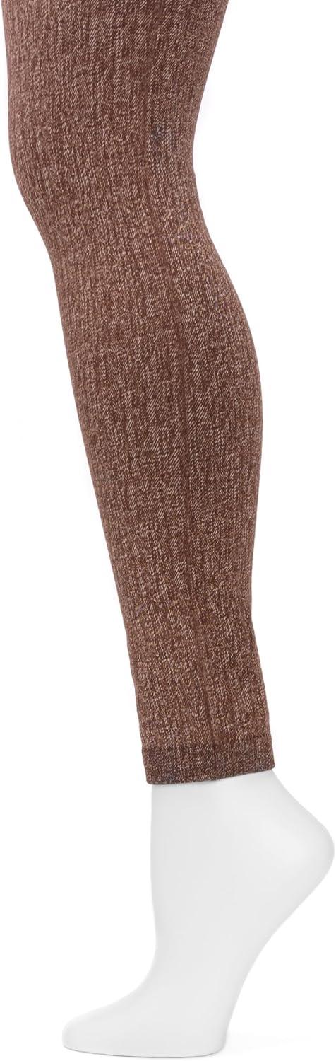 With their luxurious softness & on-the-move fit, MUK LUKS women's fleece-lined faux denim leggings are a winter wardrobe must. Plush fleece lining keeps you cozy warm. Layer the fashionable footless design with socks or let your toes breathe. 1 pair pack. Machine Wash on gentle cycle, no bleach, tumble dry low heat. Imported. ● 95% polyester 5% ELASTIC upper ● 100% polyester fleece lining ● black-black/solid, black-brown/solid, black-dark grey/solid ● a – Small, ribbed – medium, C – large