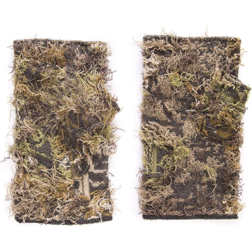 *Take your camouflage to the next dimension with the Men's Fingerless Camo Grass Gloves *Featured 3D Grassy Camo exterior allows your hands to blend with the environment while maintaining the control desired from a fingerless glove *Hand wash cold inside out and dry flat *71% acrylic, 28% polyester and 1% spandex *One size fits most